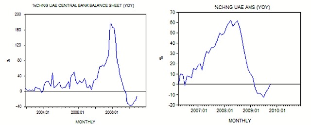 Así es como explica el caso de Dubai el analista Frank Shostak, investigador asociado del Mises Institute y economista jefe de M.F. Global. En un artículo titulado “¿Qué hay detrás de la crisis financiera de Dubai?”, Shostak sostiene que el factor clave que explica estos acontecimientos es la política de auge y recesión seguida por el banco central de los Emiratos Árabes Unidos (EAU). Así, “después de que la tasa anual de crecimiento del balance del banco central (lo que indica el ritmo de expansión monetaria) cerrara en el 4% en octubre de 2006, se disparó al 177% alrededor de diciembre de 2007”.