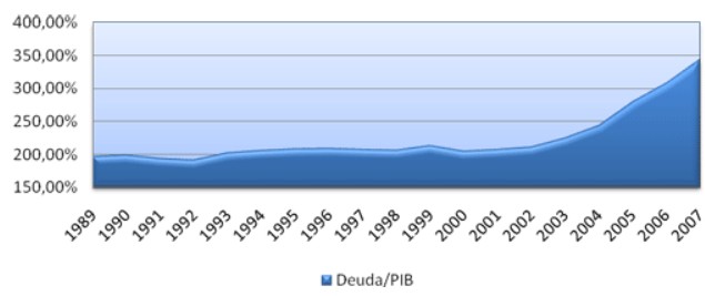En otras palabras, el nivel de endeudamiento crecía a un ritmo mucho mayor al de las rentas necesarias para pagar esas deudas. Además, se enfatiza en ocasiones el hecho de que el problema más importante actualmente es la deuda privada, y no la pública.