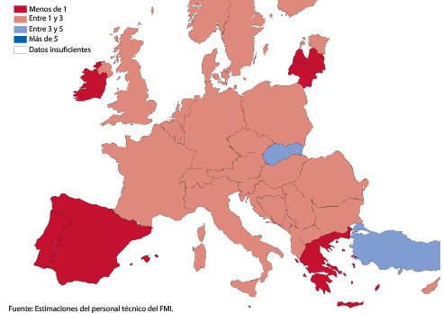 Además, España seguirá liderando la tasa paro de los países ricos, con un 19,4% en 2010 y un 18,7% en 2011. También se encuentra entre los países con mayor déficit público y exterior (diferencia entre exportaciones e importaciones). Así pues, la esperada recuperación será débil e incierta en “España, Grecia, Irlanda y Portugal”, debido a que el crecimiento se verá frenado por "los grandes desequilibrios fiscales o por cuenta corriente", indica el informe del FMI.