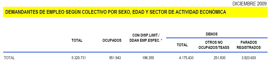 Una vez desprovistas del maquillaje estadístico, el paro registrado en nuestro país a cierre de año asciende a 4.373.788 parados. Cifra que resulta de sumar los parados que Trabajo deja fuera de las listas a la cifra oficial de desempleados. En cualquier caso, 2009 cierra con un total de 5.325.731 de demandantes de empleo, de los que 951.943 tienen un empleo y desean cambiarlo.