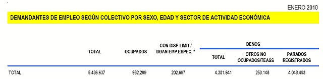 Por otro lado, España comienza 2010 con un total de 5.436.637 demandantes de empleo, de los que 932.299 son ocupados, es decir, tienen un empleo pero desean cambiar de trabajo.