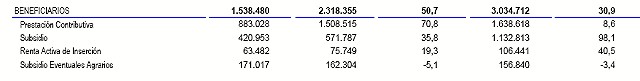 Por otro lado, el aumento del paro se materializa en un incremento del volumen de prestaciones de desempleo. Los datos de prestaciones siempre van con un mes de retraso respecto a las cifras de paro. Por eso, Trabajo ha publicado este martes las cifras del gasto en desempleo diciembre de 2009 y los datos de paro de enero de 2010.