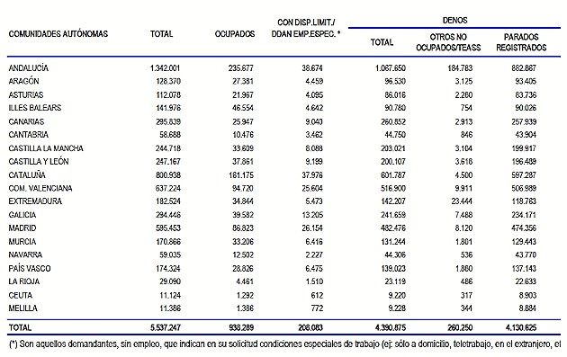 Si se suman los desempleados DENOS y los citados de disponibilidad limitada y demanda de empleo específica, el maquillaje oculta 468.333 parados.. Sumando esta cifra a los desempleados oficiales el saldo total asciende 4,6 millones personas sin trabajo.