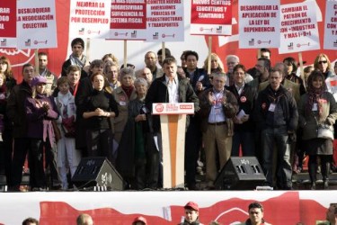 También estuvo presente en la manifestación el secretario de Movimientos Sociales y Relaciones con las ONGs del PSOE, Pedro Zerolo , que celebró la convocatoria con una peculiar interpretación. "Es un acto de solidaridad y responsabilidad de la crisis. El mejor antídoto para crear empleo y pedir al Gobierno que continúe con su valentía para cambiar el modelo económico", expuso el dirigente socialista, que demostró así que ve en la manifestación, en realidad, un acto en apoyo al Ejecutivo.