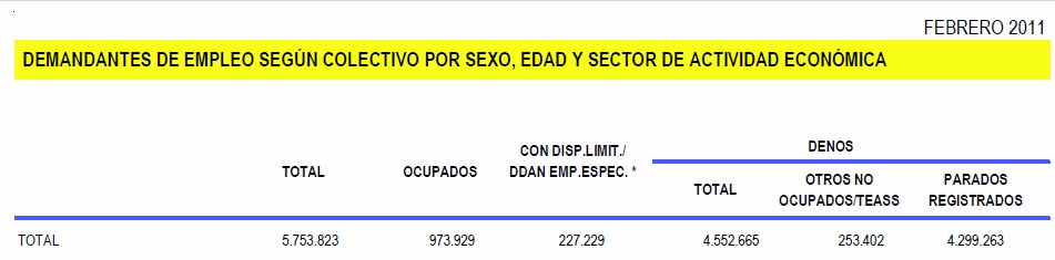 Además, el Ministerio que dirige Valeriano Gómez tampoco contabiliza a los 227.229 desempleados agrupados bajo el título de demandantes de empleo con "disponibilidad limitada" o "demanda de empleo específica". Estas personas, según afirma el antiguo Inem, "son aquellos demandantes, sin empleo, que indican en su solicitud condiciones especiales de trabajo". Es decir, que son también parados.
