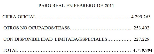 Hasta aquí los datos oficiales difundidos por el Gobierno. Sin embargo, a dichos números es preciso sumar la bolsa de desempleados que no son contabilizados por el Gobierno en las listas del Inem, como consecuencia del habitual maquillaje estadístico que se aplica desde 2008.