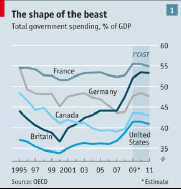 No obstante, continúa The Economist, la pujanza del Estado grande ya se estaba dando antes de que estallara la crisis. Los laboristas británicos habían aumentado el gasto público en el National Health Service (sistema público de salud) en un 6% anual, así como el gasto en educación, con el beneplácito de los conservadores. Durante los 13 años de gobierno laborista dos tercios de los nuevos trabajos han sido creados por el sector público, donde los salarios también han crecido más que en el privado. En Estados Unidos, George Bush presidió la mayor expansión del Gobierno federal desde Lyndon Johnson en los 60.