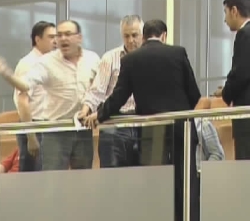 Los trabajadores, afectados por la presentación de expedientes de regulación de empleo (ERE) en sus respectivas empresas, comenzaron la trifulca cuando Esperanza Aguirre abandonaba el salón de plenos en medio de la intervención de su consejero de Economía, Antonio Beteta, sobre la situación del sector industrial. "¡No nos hace ni puto caso!", "¡que nos vea!", "¡no al cierre!", han gritado los trabajadores que asistían al pleno, mientras cerca de un millar de compañeros permanecían concentrados a las puertas de la Asamblea.