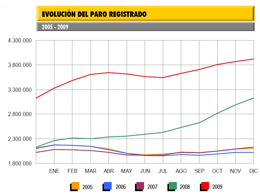 En el conjunto del año 2009, recién finalizado, el paro se ha incrementado en 794.640 personas (25,40%).