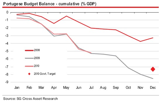 Mientras, en el caso de Portugal el temor se centra en la incapacidad del Gobierno para reducir su brecha fiscal. De hecho, se ha incrementado en lo que va de año respecto al déficit récord registrado en 2009: 9.200 millones de euros hasta agosto, frente a los 8.740 millones del mismo periodo del pasado año. Así, de seguir esta tendencia, el déficit público se situará cerca del 9% del PIB en 2010, incumpliendo así el objetivo de reducción fijado por Bruselas (7,3%).