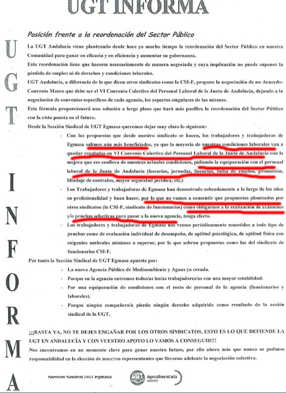 Este es el papelito de la UGT de Egmasa: