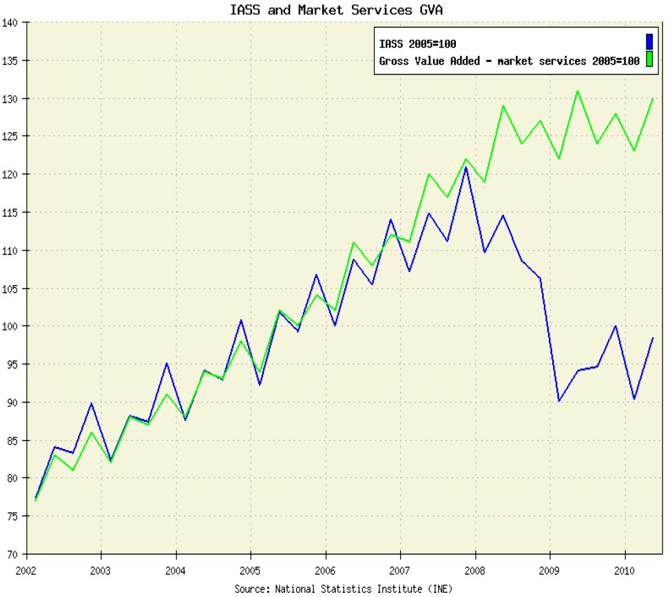 Esta discrepancia tan sólo se observa en España. En Francia, por ejemplo, ambos indicadores discurren de forma similar: mientras que el IASS apenas cae un 1,2% en ambos años, el VAB permanece estancado. En España, sucede justo lo contrario: el IASS se desploma un 21%, pero el VAB aumenta un sorprendente 4,5%. Y eso que, en teoría, la metodología empleada es la misma en ambos países.