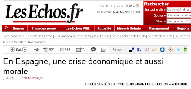 En el también periódico galo Les Echos, el periodista Gilles Sènges también ataca el sistema autonómico español y cuestiona la salida de la recesión por los "sobrecostes de la organización territorial española".