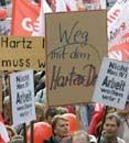 La marcha de este sábado contra la "Hartz IV" reunió a líderes sindicales, miembros de grupos antiglobalizadores como ATTAC, y líderes del pos-comunista Partido del Socialismo Democrático (PDS).