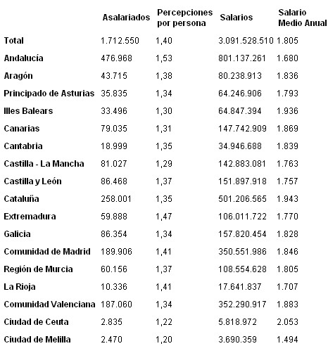 El salario medio anual de estas más de 800.000 personas andaluzas se sitúa en 1.728 euros anuales, es decir, menos de 150 euros al mes. Menos de 5 euros al día. Los datos están referidos al ejercicio de 2008 y el tramo de salario examinado es el que va de 0 a 0,5 veces el Salario Mínimo Interprofesional. Que alguien diga que la concertación empresario-sindical en Andalucía ha resultado ser un éxito, es sencillamente bochornoso. No sabemos para qué sirve dicha concertación. Para resolver los problemas del empleo y los salarios más bajos, desde luego que no. Tras casi 30 años de gobiernos socialistas, esta es la situación real de los más débiles en Andalucía y deja intuir una oscura cortina de economía sumergida.