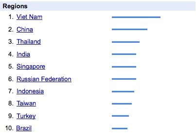 Así se desprende de los datos de Google Trends, una herramienta que muestra los términos de búsqueda más populares del los últimos doce meses y que apuntan a Vietnam como un mercado potencial para los proveedores de Internet, equipos de telefonía y servicios de tecnología 3G.