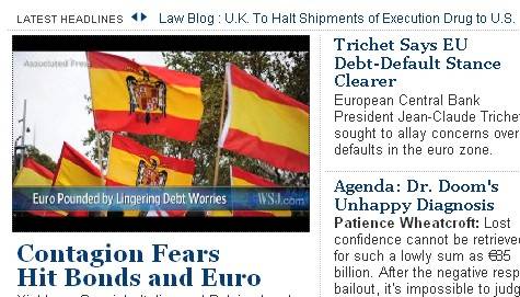 En el artículo del diario estadounidense, nada nuevo: The Wall Street Journal repasa las alarmantes cifras de la economía española, con la prima de riesgo en máximos y el interés del bono a diez años batiendo récords. También apunta a la situación de Portugal e Italia y habla de la crisis generalizada de la Eurozona. Con el mercado teniendo la vista puesta en España e Italia, puede que el 'demasiado grande para caer' se convierta en 'demasiado grande para fiar', dice un analista.