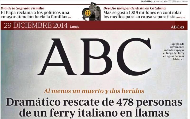 ABC es un diario español fundado en 1903 por Torcuato Luca de Tena de línea conservadora y monárquica. Entre sus rasgos destaca su formato, pues se edita con grapa y en formato folio. ABC es uno de los grandes diarios nacionales, con once ediciones y una sólida posición en Madrid y Sevilla. Actualmente lo dirige Bieito Rubido Ramonde.
