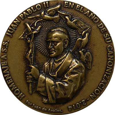 Alto 25cm / Ancho 18cm *Obsequio exclusivo por la compra de la escultura: Medalla realizada por Juan de Ávalos con motivo de la canonización de Juan Pablo II (6 cm de diámetro en zamac-matalizado).