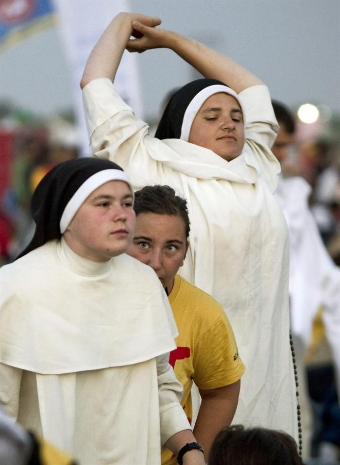 Una simpática imagen de dos religiosas en la mañana del domingo en Cuatro Vientos
