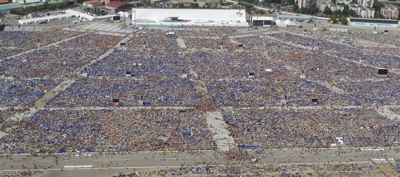 Desde el punto de vista opuesto se aprecia todavía mejor la ingente multitud que se ha reunido estos días en Cuatro Vientos