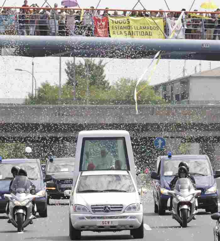 El traslado hacia la sede de la Nunciatura fue la primera oportunidad para la mayoría de los peregrinos de ver a Benedicto XVI