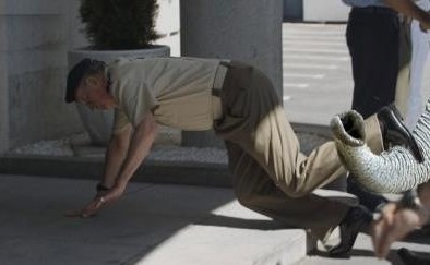 Juan Carlos I visitó el jueves al Estado Mayor de la Defensa, pasó revista a las tropas, no vio un escalón, tropezó y zas, caída al canto. En cuanto la imagen empezó a circular por Internet, las redes sociales –en especial, de Twitter- se llenaron de comentarios y de montajes que tenían, como protagonista, el traspié del monarca.