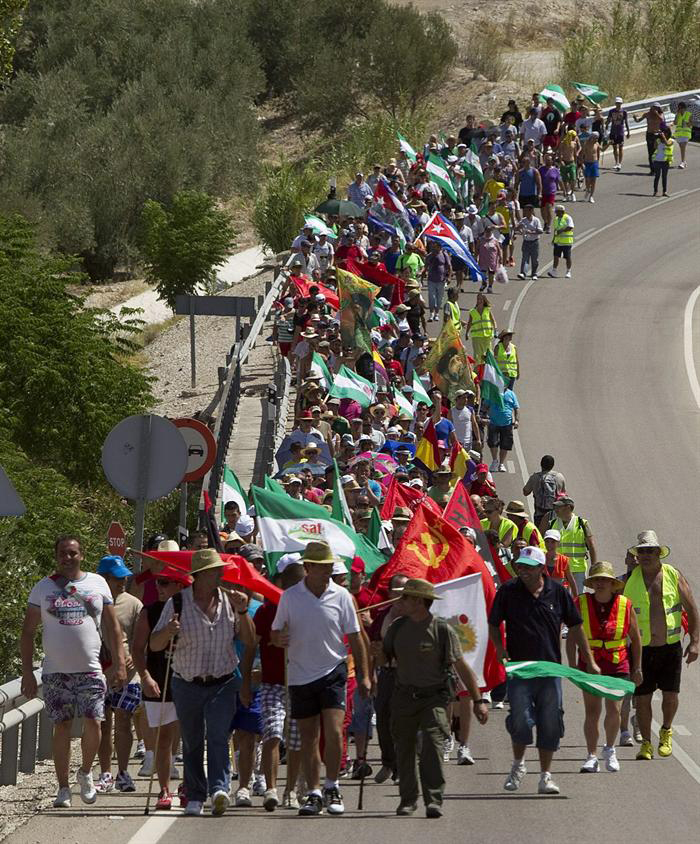 El dirigente del SAT y unos cuantos de los miembros del sindicato han emprendido una marcha que les llevará por Andalucía y en la que amenazan con ocupar "fincas, supermercados, bancos y viviendas vacías". En Extremadura les han salido unos imitadores.
