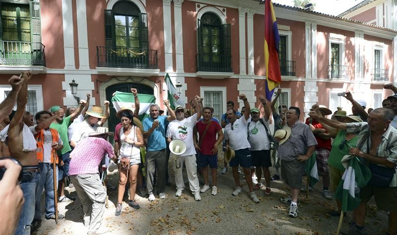 El diputado autonómico y alcalde de Marinaleda en los jardines del Palacio de Moratalla, en el término de Hornachuelos (Córdoba), tras ser ocupado por miembros del Sindicato Andaluz de Trabajadores (SAT).
