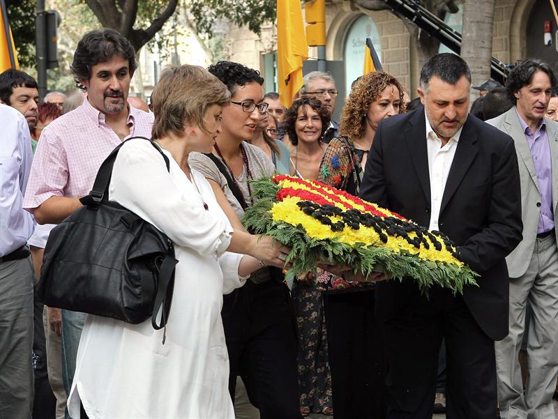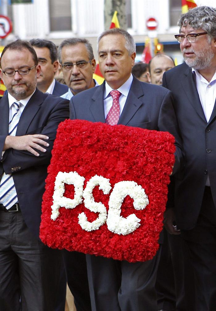 El secretario general de los socialistas catalanes, Pere Navarro, durante la ofrenda floral en el monumento a Rafael de Casanovas