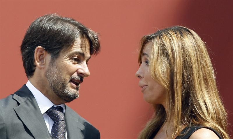 Oriol Pujol (CiU) y Alicia Sanchez Camacho (PPC) charlan animadamente tras finalizar el acto institucional de la Diada celebrado este mediodía junto a los máximos dirigentes políticos y representantes del mundo social y cultural de Cataluña.