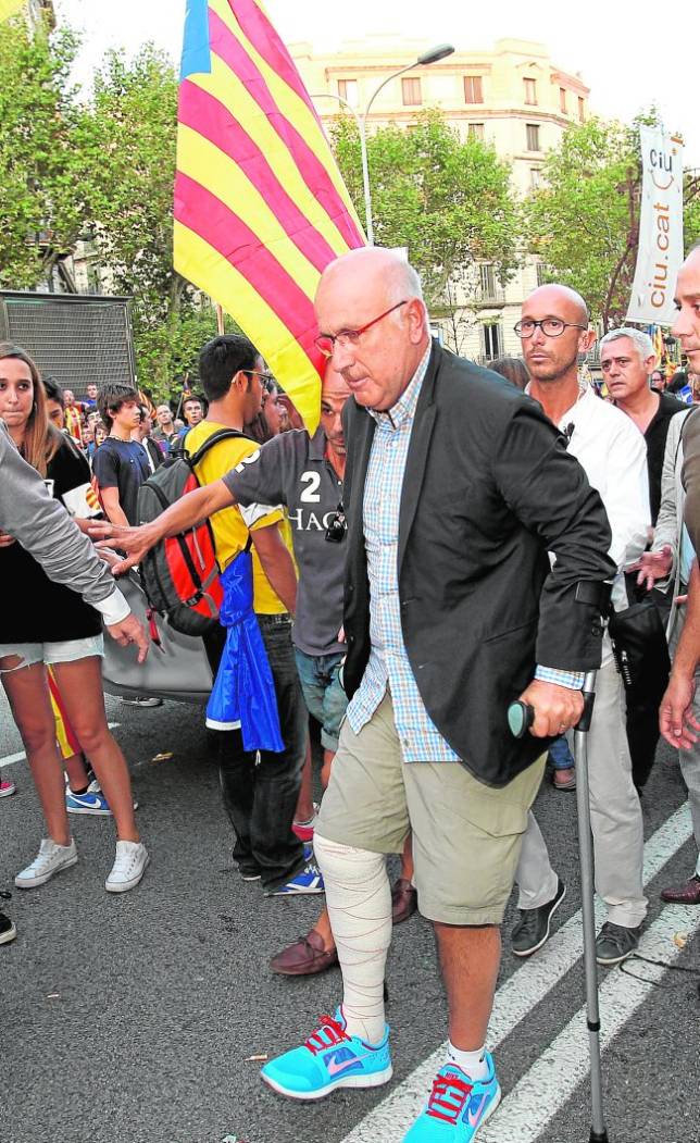 Duran i Lleida acudió a la manifestación con muletas y con unas peculiares zapatillas