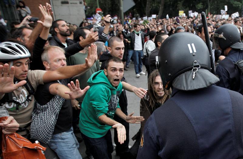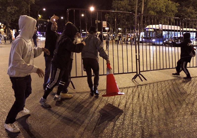 Minutos previos a la primera carga policial, producida después de que se intentara derribar la valla que protegía el Congreso