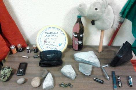 Cifuentes ha dicho que la Policía incautó "desde escudos -improvisados con las tapas de los contenedores de la basura- protectores hasta palos, punzones o tirachinas", además de 265 kilos de piedra y 4.000 latas de cerveza, utilizados como "armas arrojadizas".