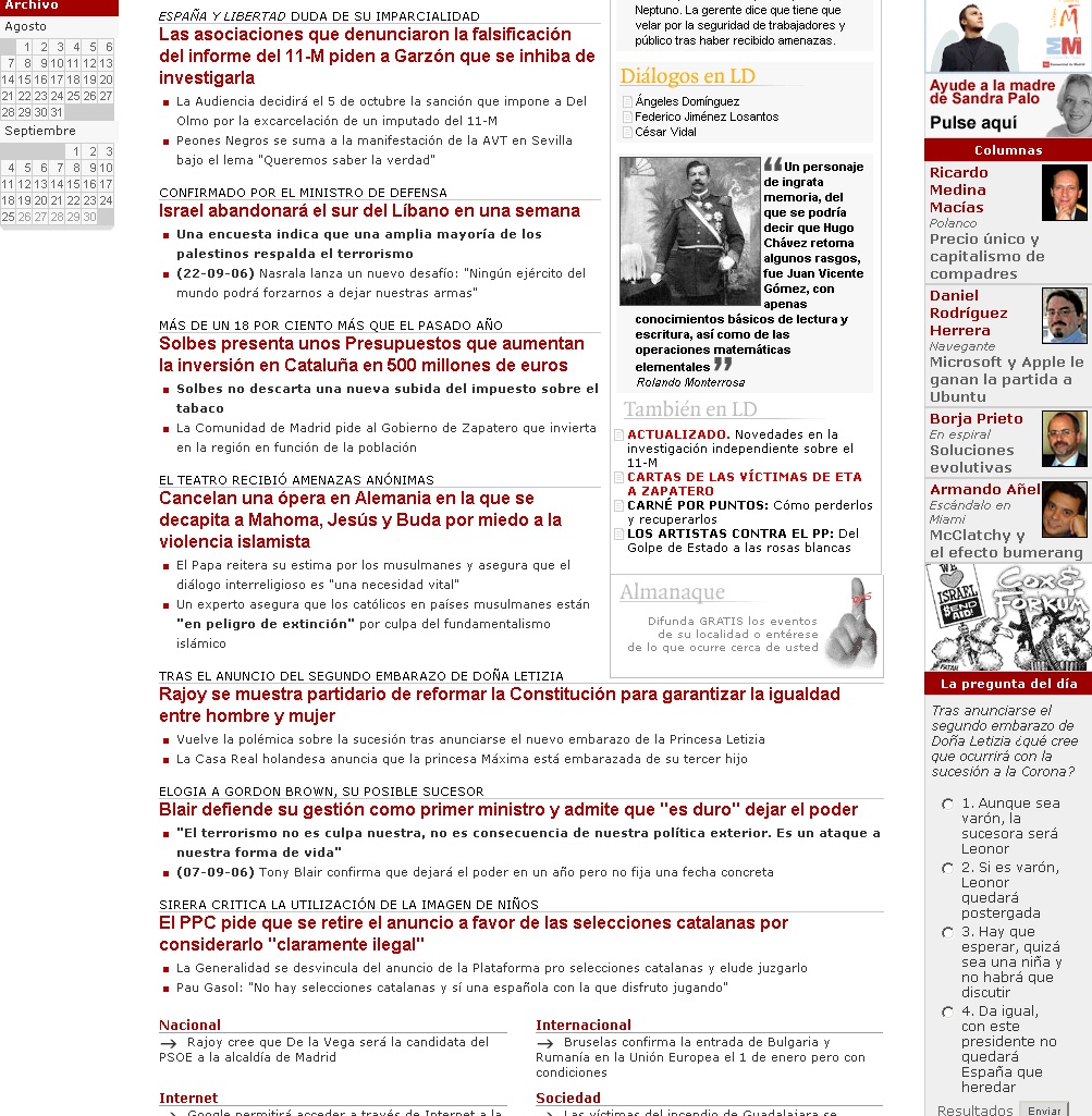 Tal día como hoy, 26 de septiembre, pero de 2006, Libertad Digital llevaba en su portada que "Cancelan una ópera en Alemania en la que se decapita a Mahoma, Jesús y Buda por miedo a la violencia islamista". La ópera en cuestión es "Idomeneo", compuesta por Mozart y en cuyo epílogo el rey de Creta sale al escenario con una bolsa en el que porta las cabezas de Buda, Poseidón, Jesús y Mahoma.