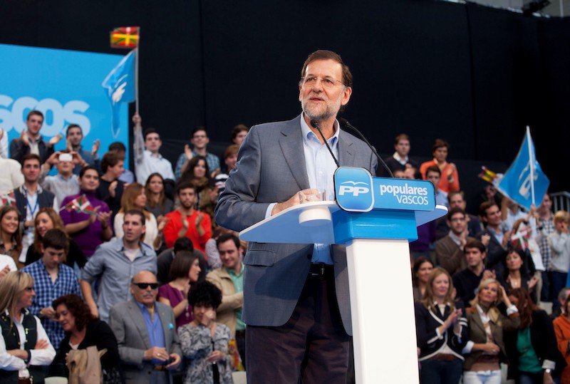 El jefe del Ejecutivo enarboló la insignia nacional en Vitoria, con todo lo que esto conlleva de simbolismo. Fue respondido con ovación por los más de mil cuatrocientos simpatizantes que fueron a escucharle. Era su reencuentro con la sociedad tras la presentación de los Presupuestos para 2013, que defendió toda vez se marcó una vez como objetivo capital el control del déficit público.