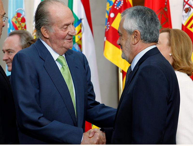 Juan Carlos I saluda al presidente de la Junta de Andalucía, José Antonio Griñán