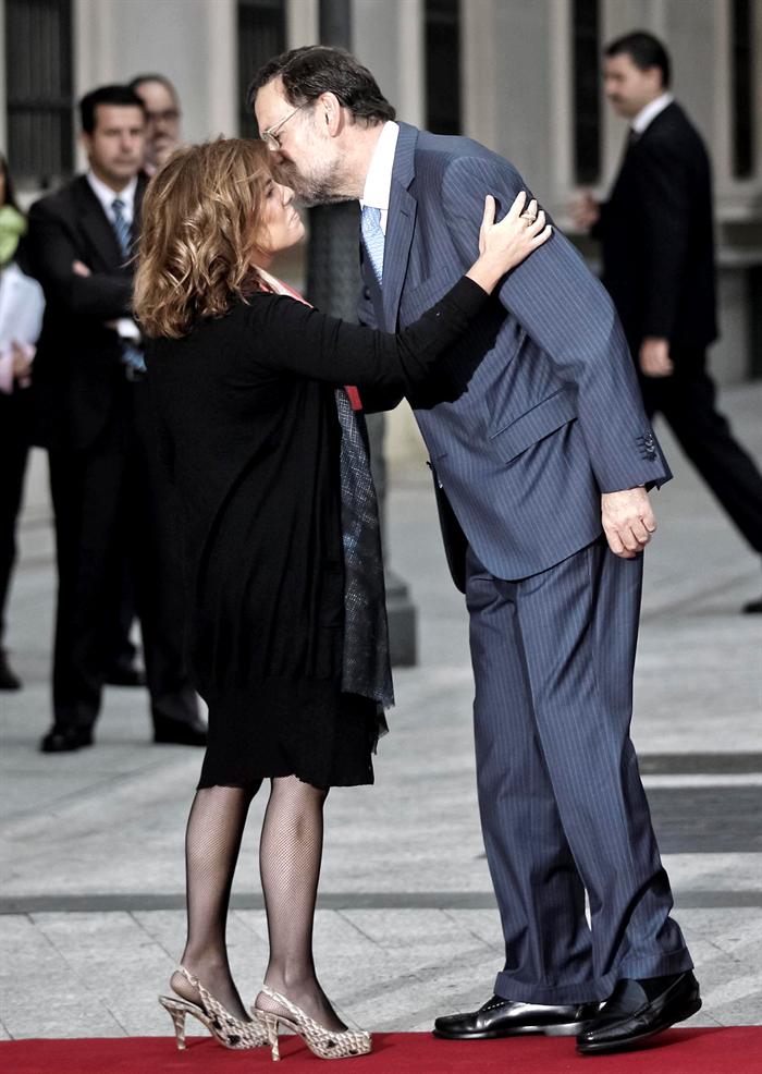 Soraya Sáenz de Santamaría se dirige a Mariano Rajoy, en el monumento a Cánovas