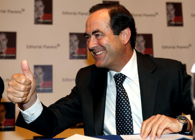 José Bono, muy contento, esta tarde durante la presentación de su libro, 'Les voy a contar', en Madrid