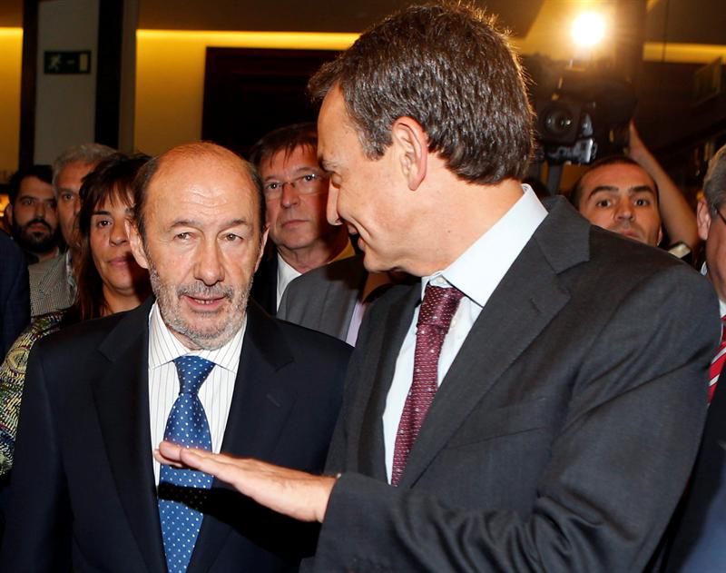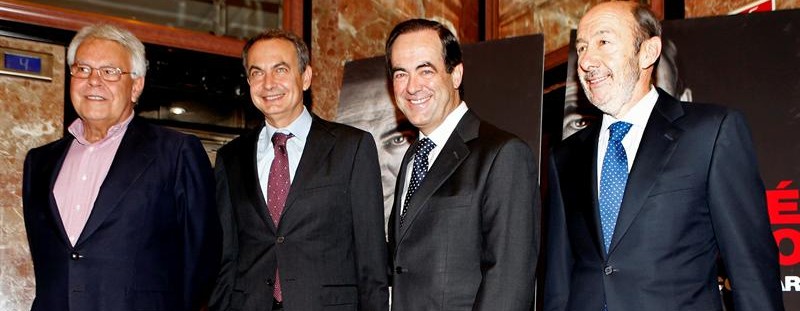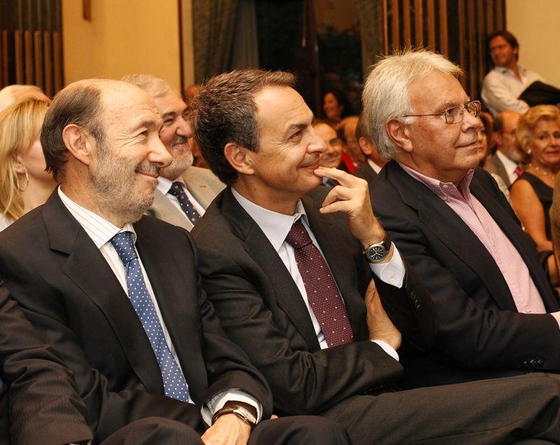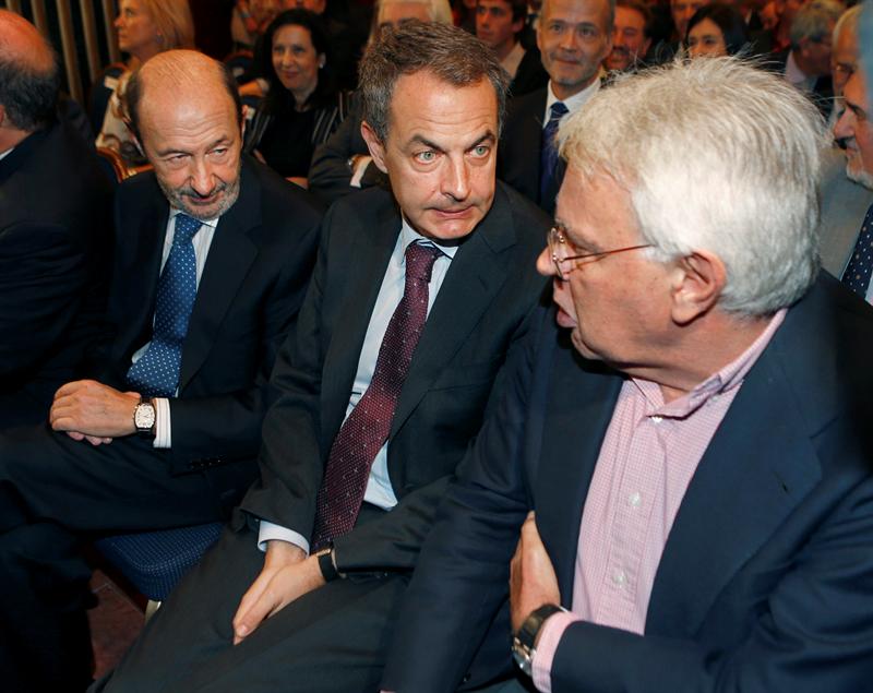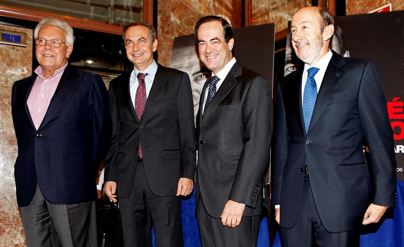 Los expresidentes del Gobierno Felipe González y José Luis Rodríguez Zapatero y el actual líder del PSOE, Alfredo Pérez Rubalcaba, han arropado este jueves a José Bono en el acto de presentación de su libro titulado ‘Les voy a contar’.