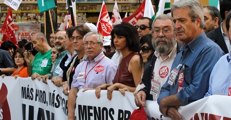 En una rueda de prensa previa a la manifestación convocada por la Cumbre Social, compuesta por casi 150 organizaciones, los líderes de CCOO y UGT han exigido al Ejecutivo que convoque un referéndum sobre los recortes antes de que la situación social se vuelva "explosiva e insostenible".