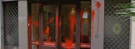 La sede del PSC en el distrito de Ciudad Vieja de Barcelona ha sufrido un ataque sobre las 10:50 horas de este jueves por parte de un grupo de diez encapuchados.