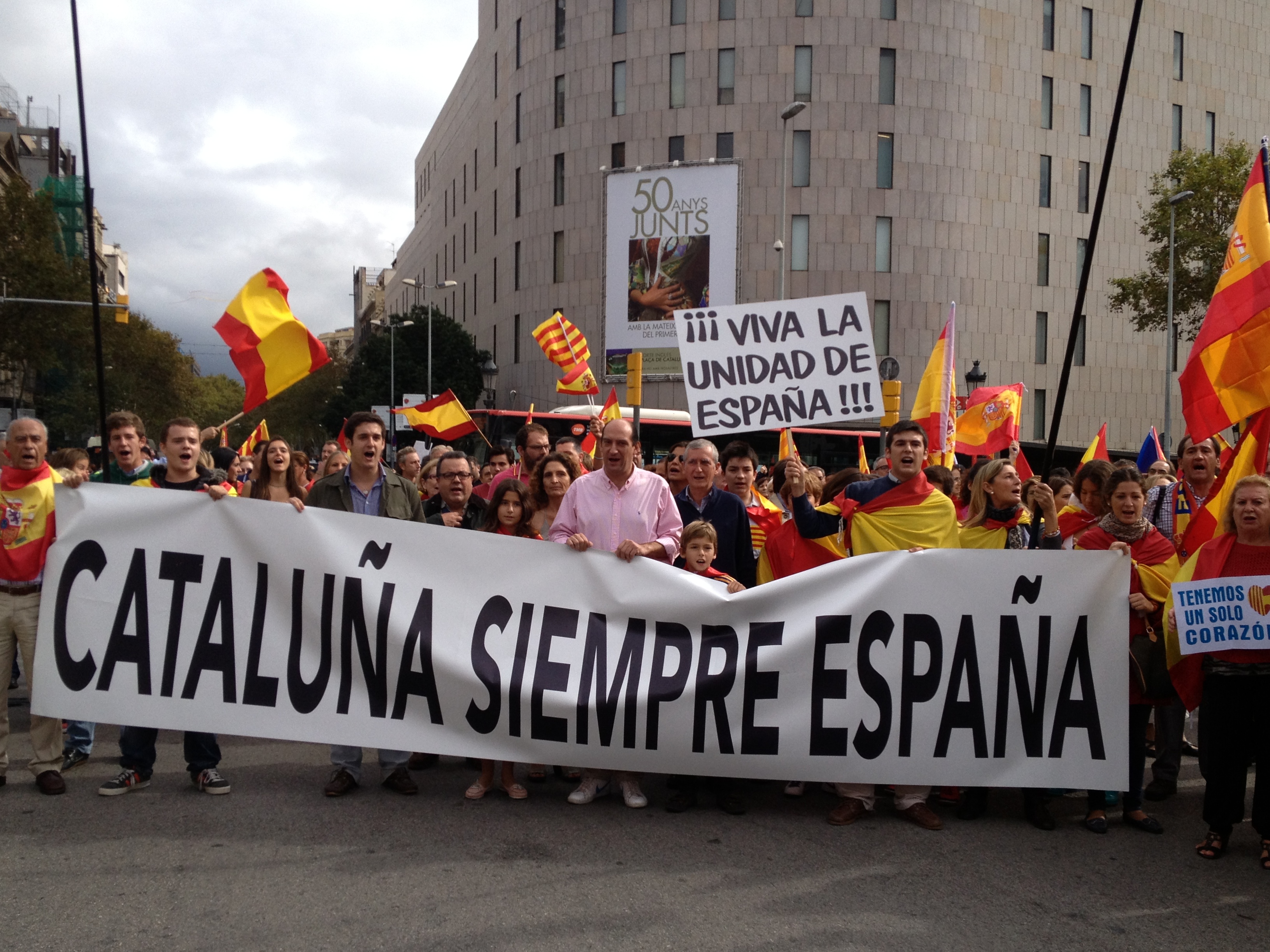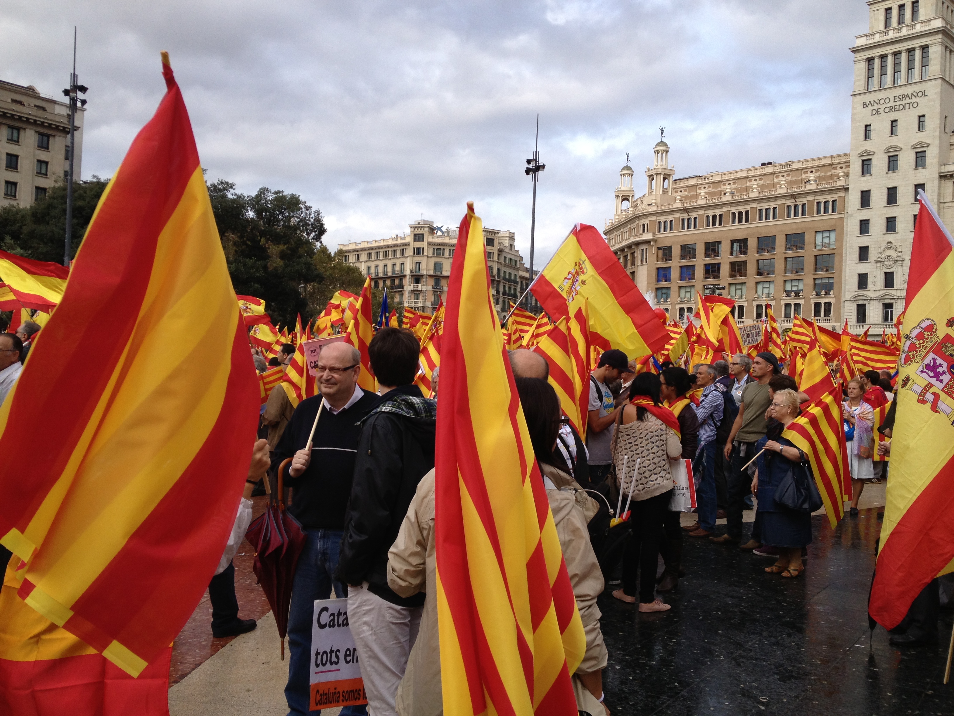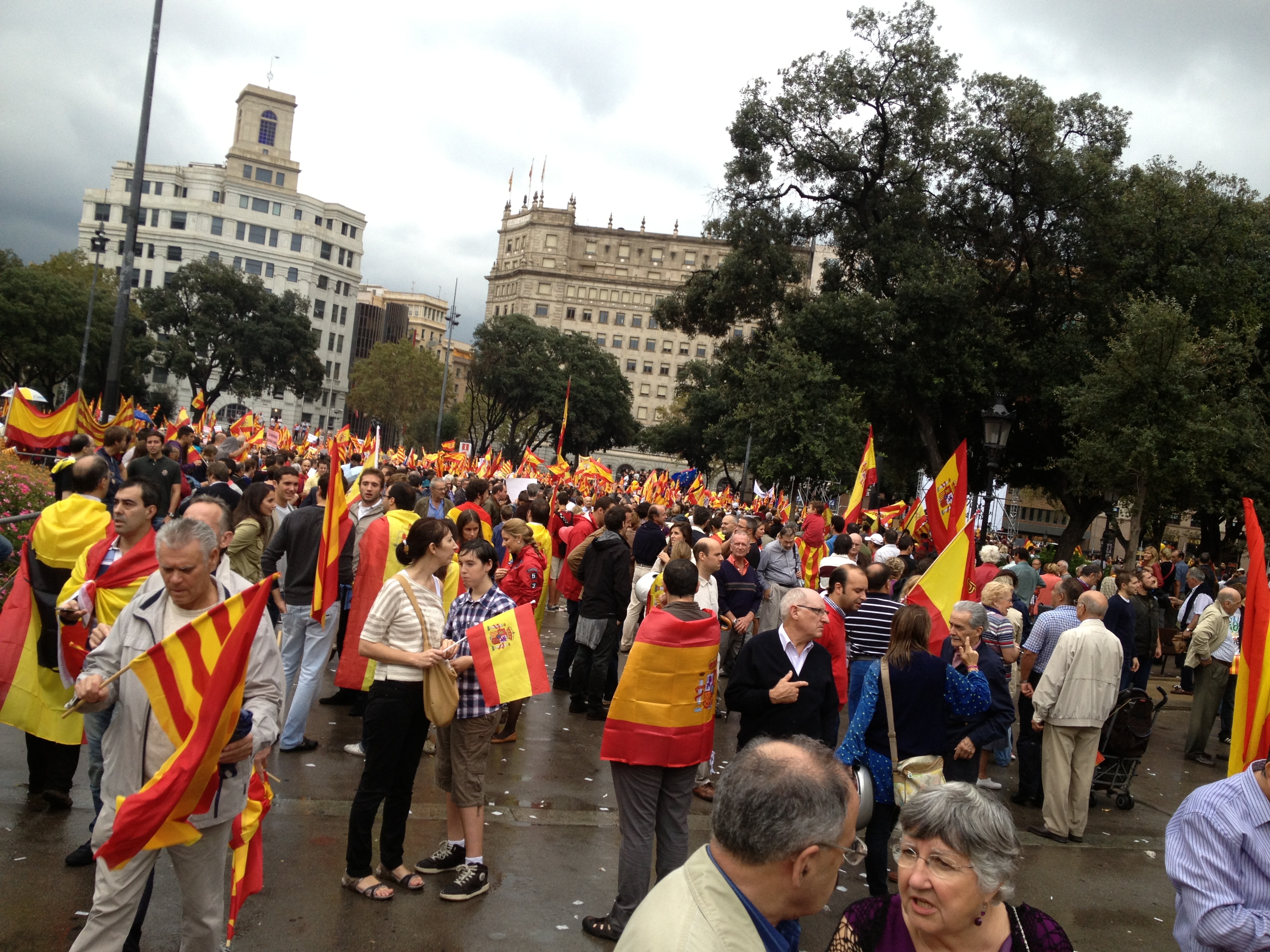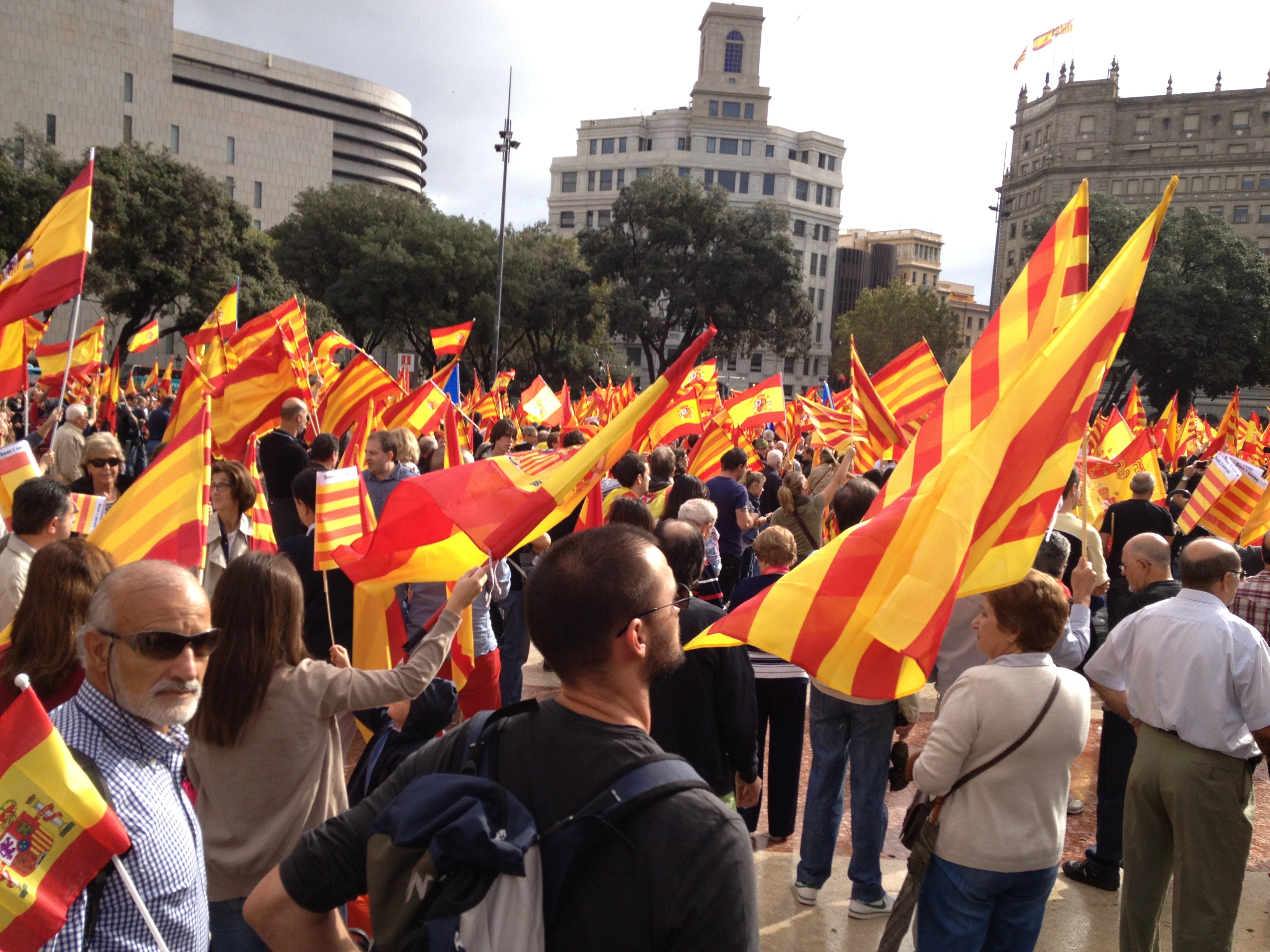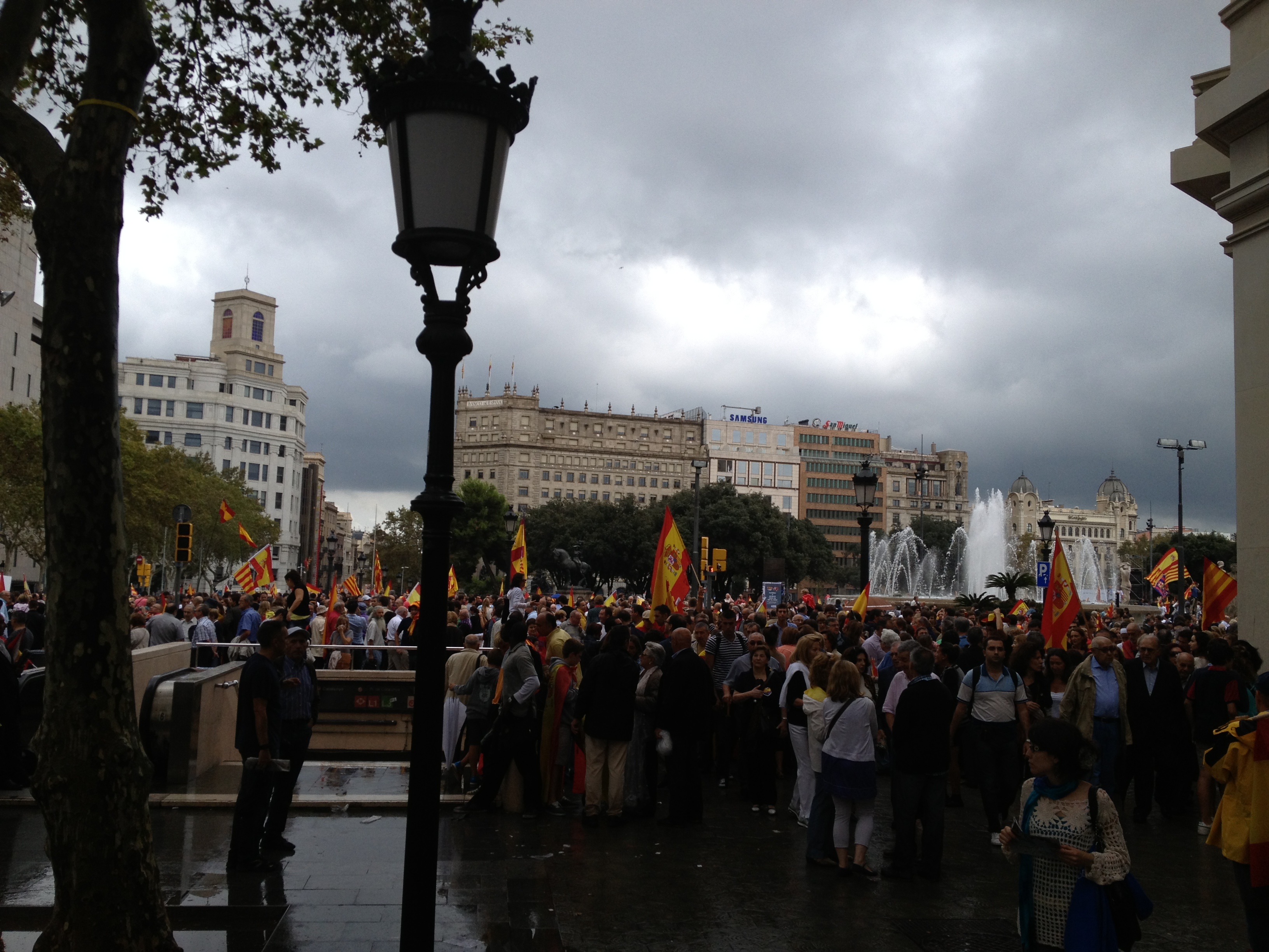Manifestación en la plaza de Cataluña, convocada por varios colectivos cívicos en favor de la unidad de España y contra la secesión de Cataluña. Fotos: María Isabel Guma