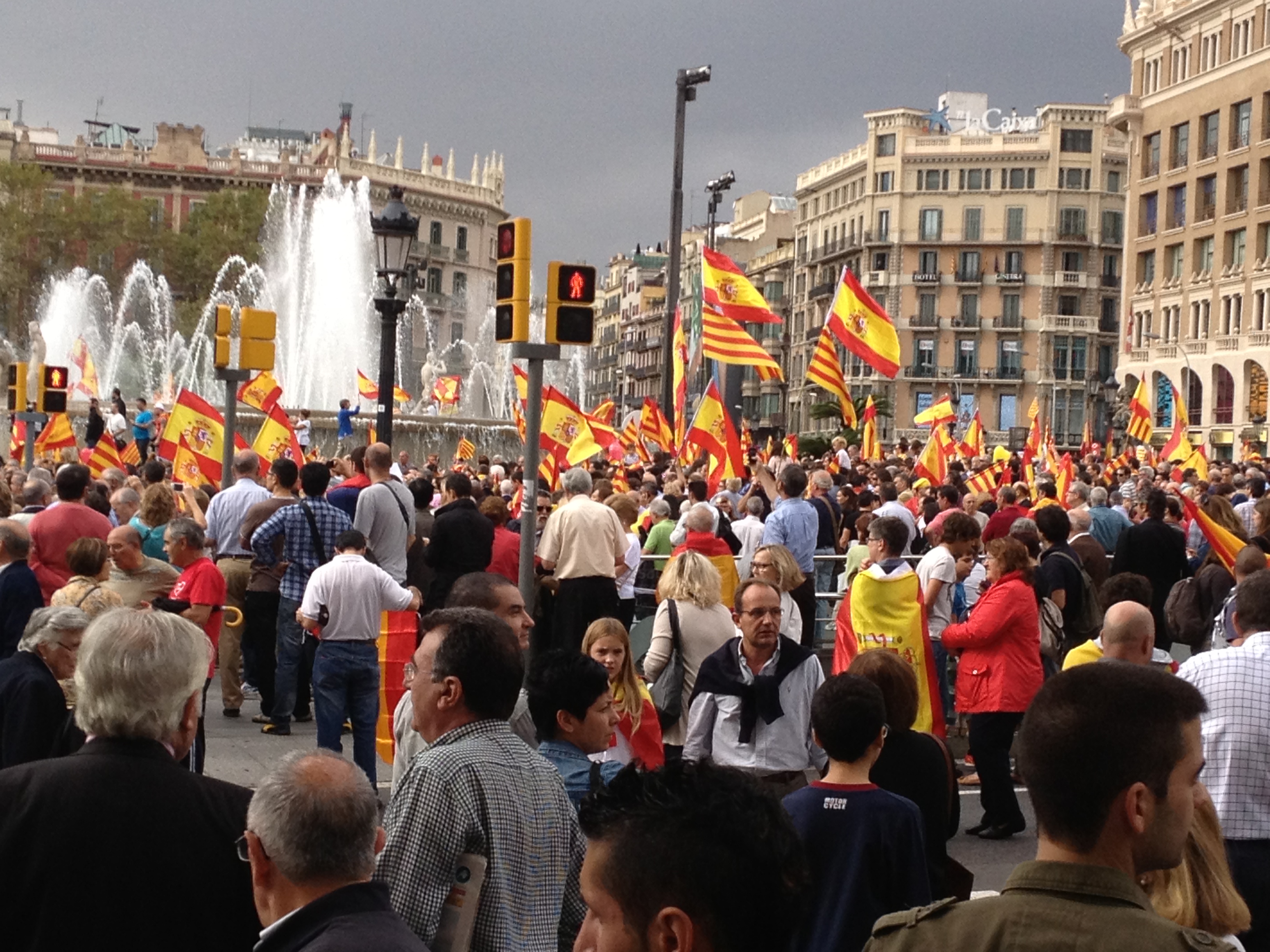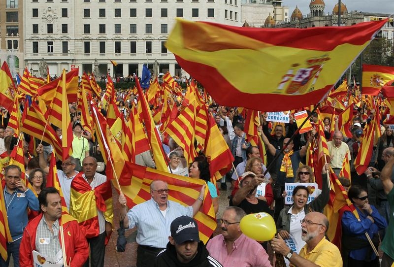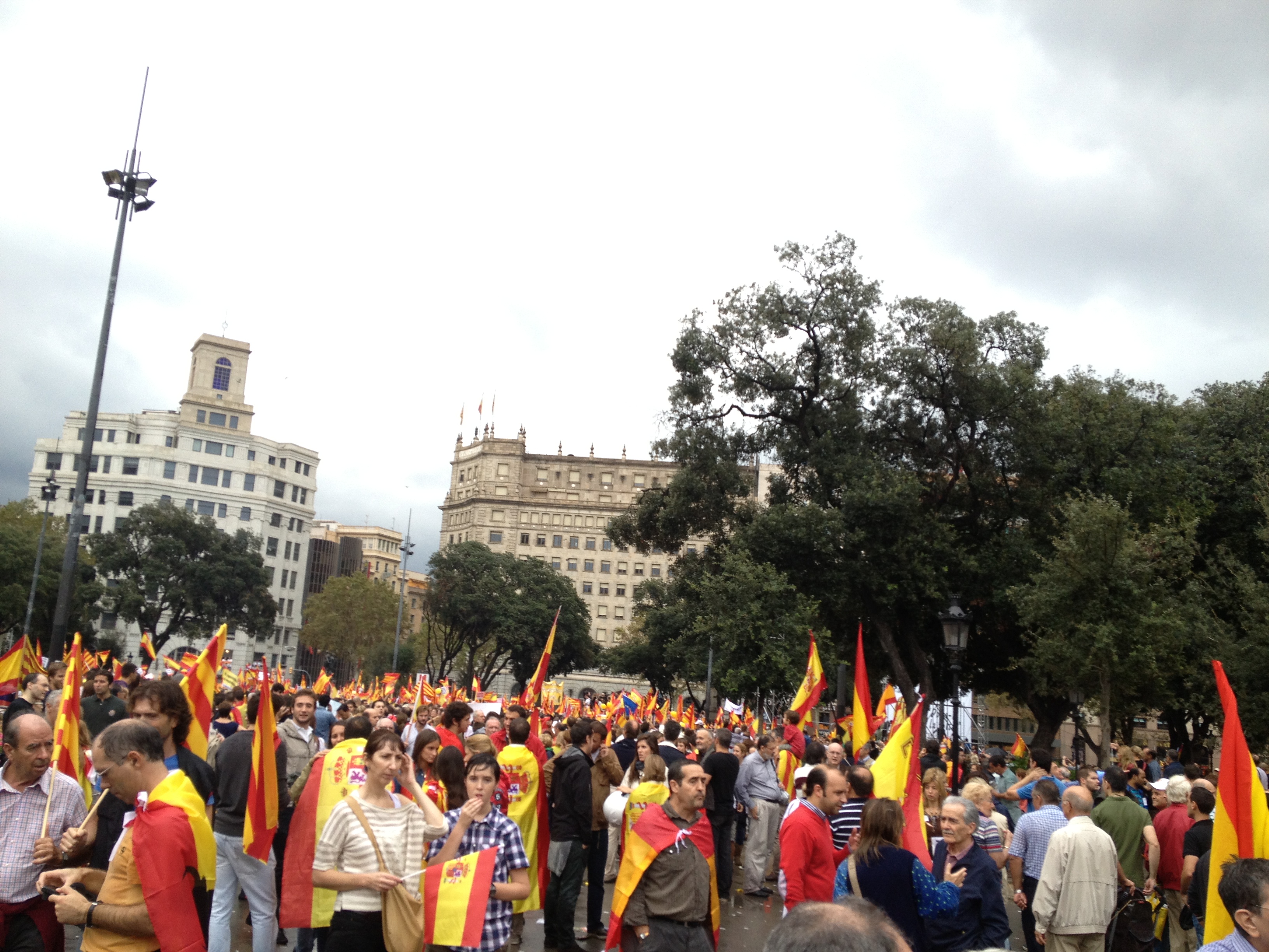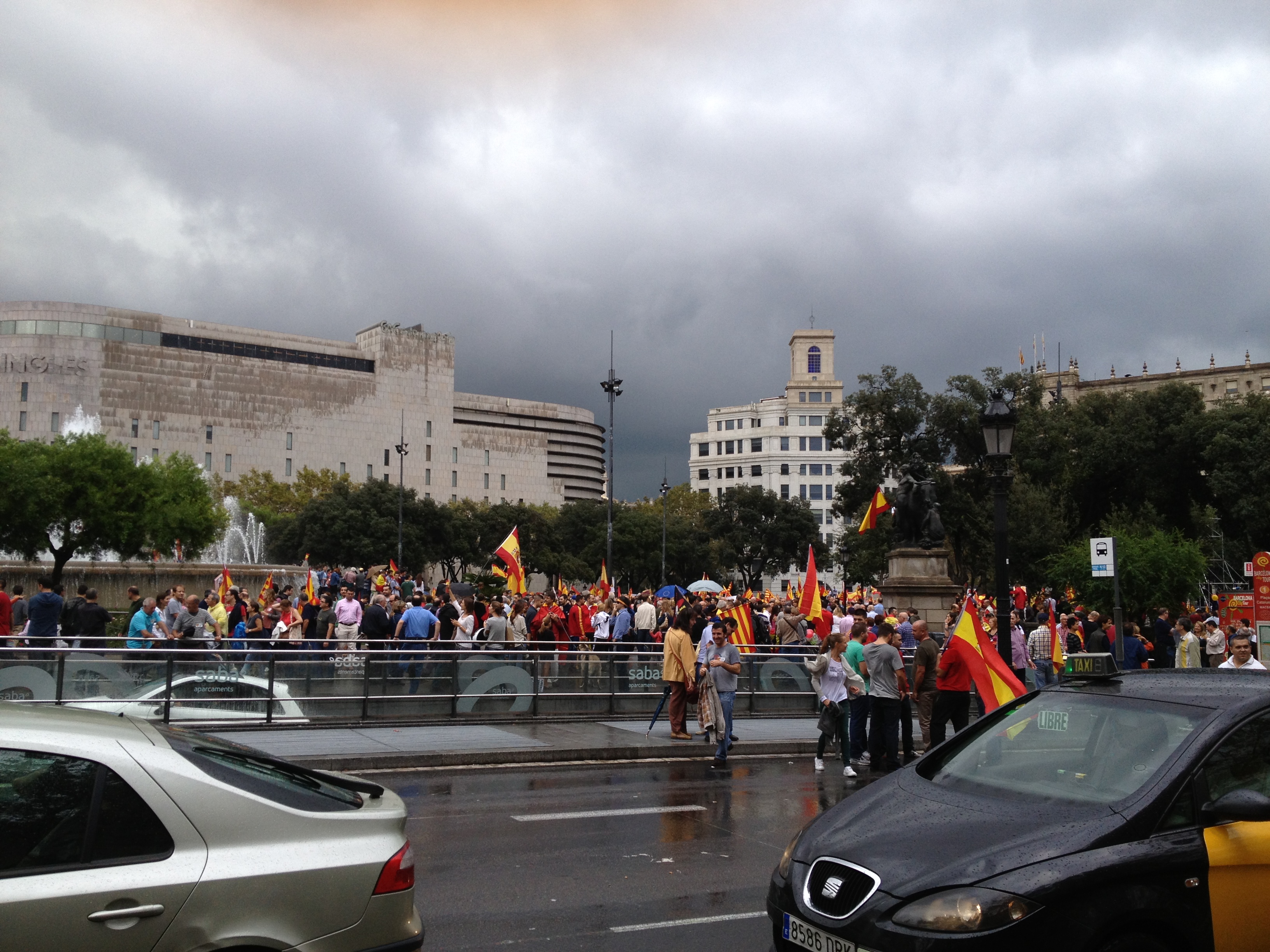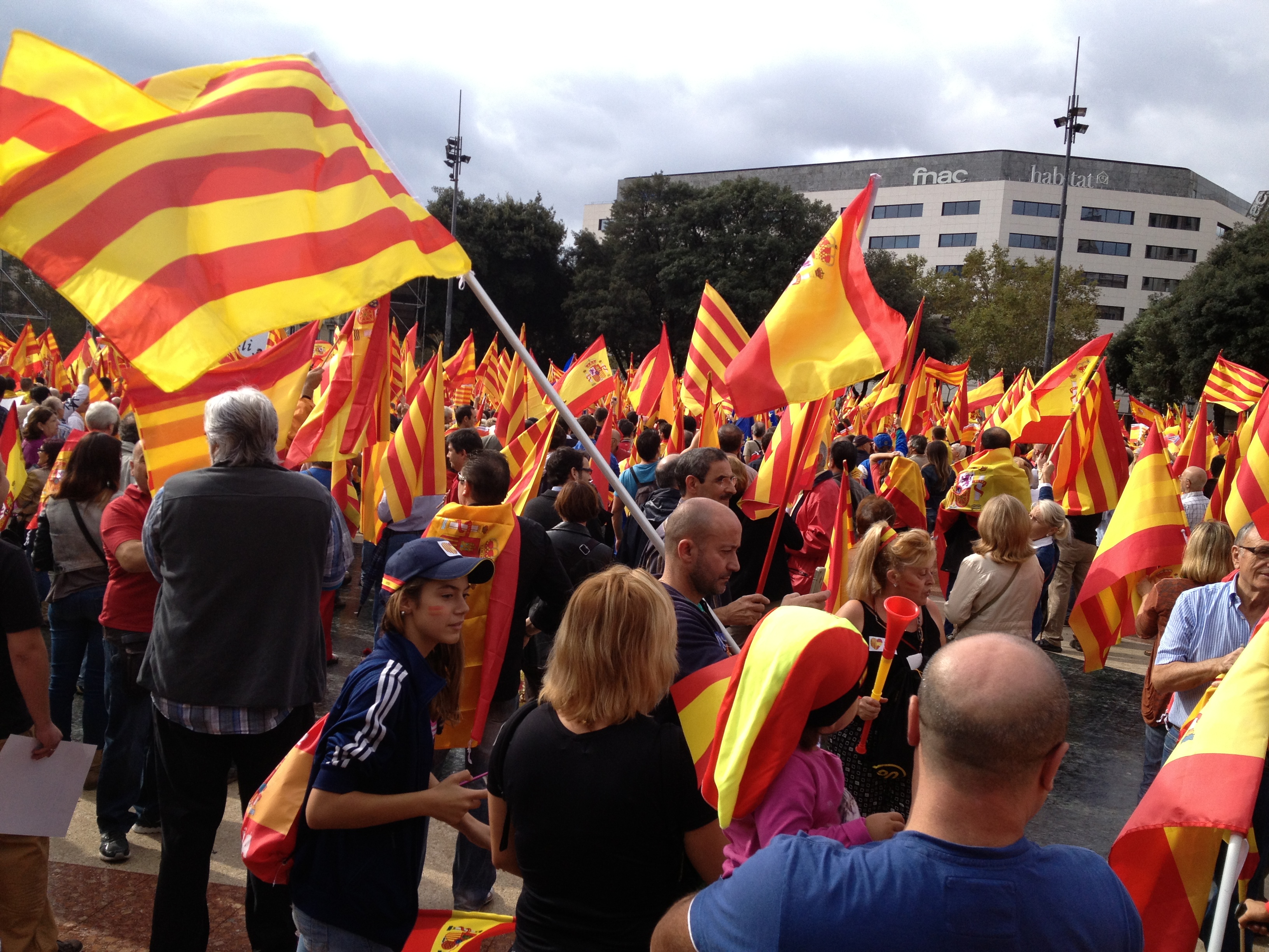 Manifestación en la plaza de Cataluña, convocada por varios colectivos cívicos en favor de la unidad de España y contra la secesión de Cataluña. Fotos: María Isabel Guma