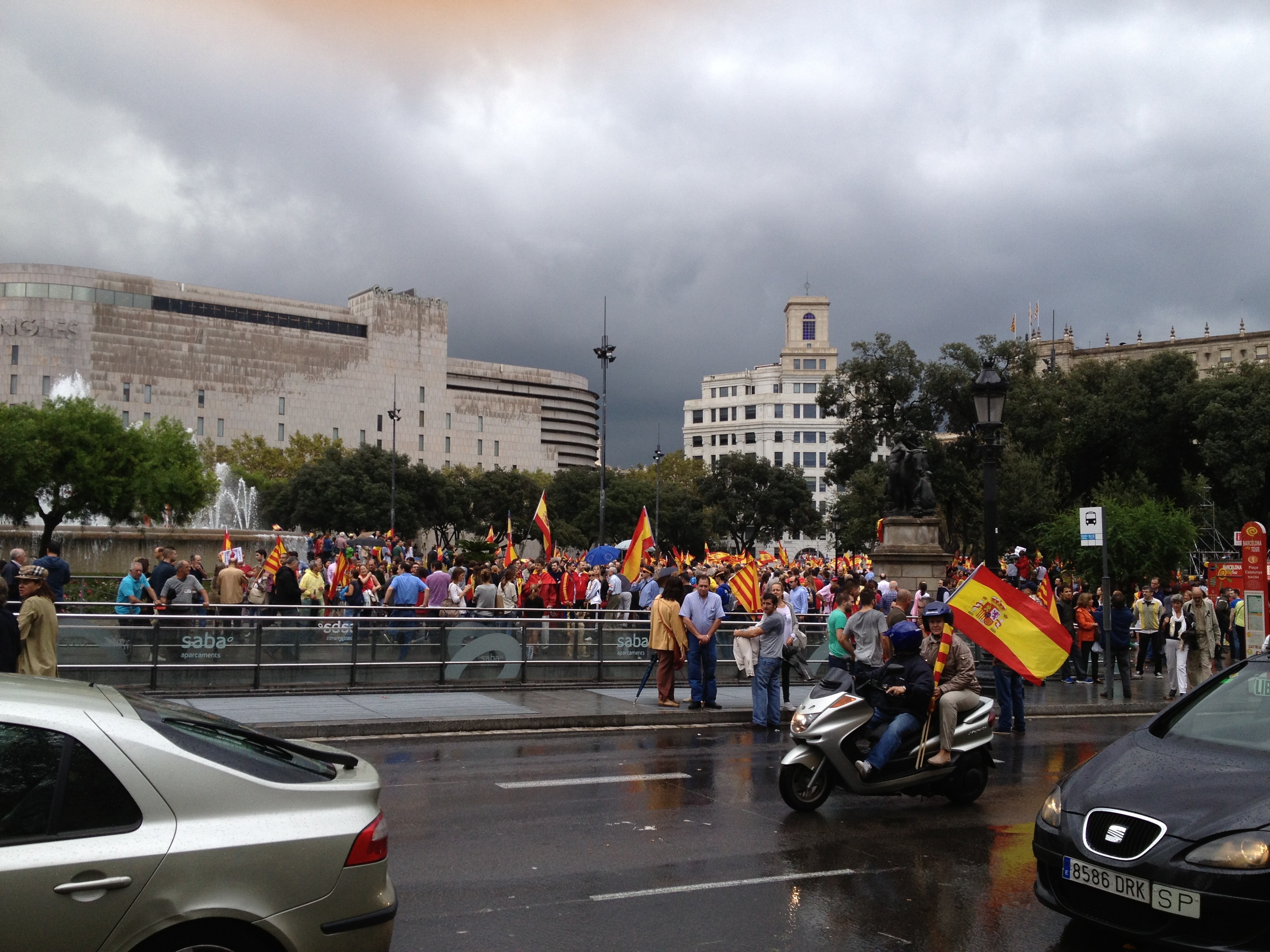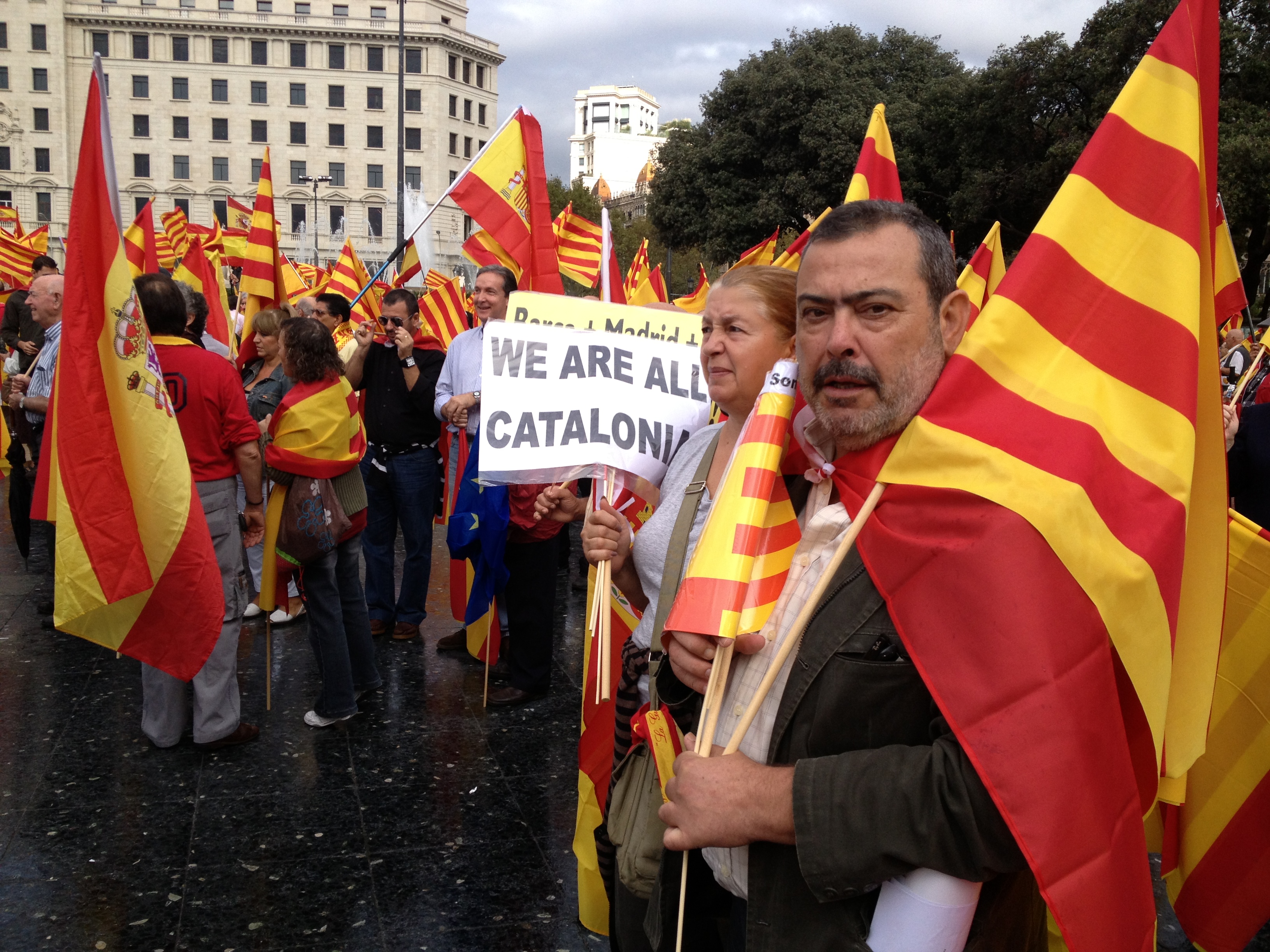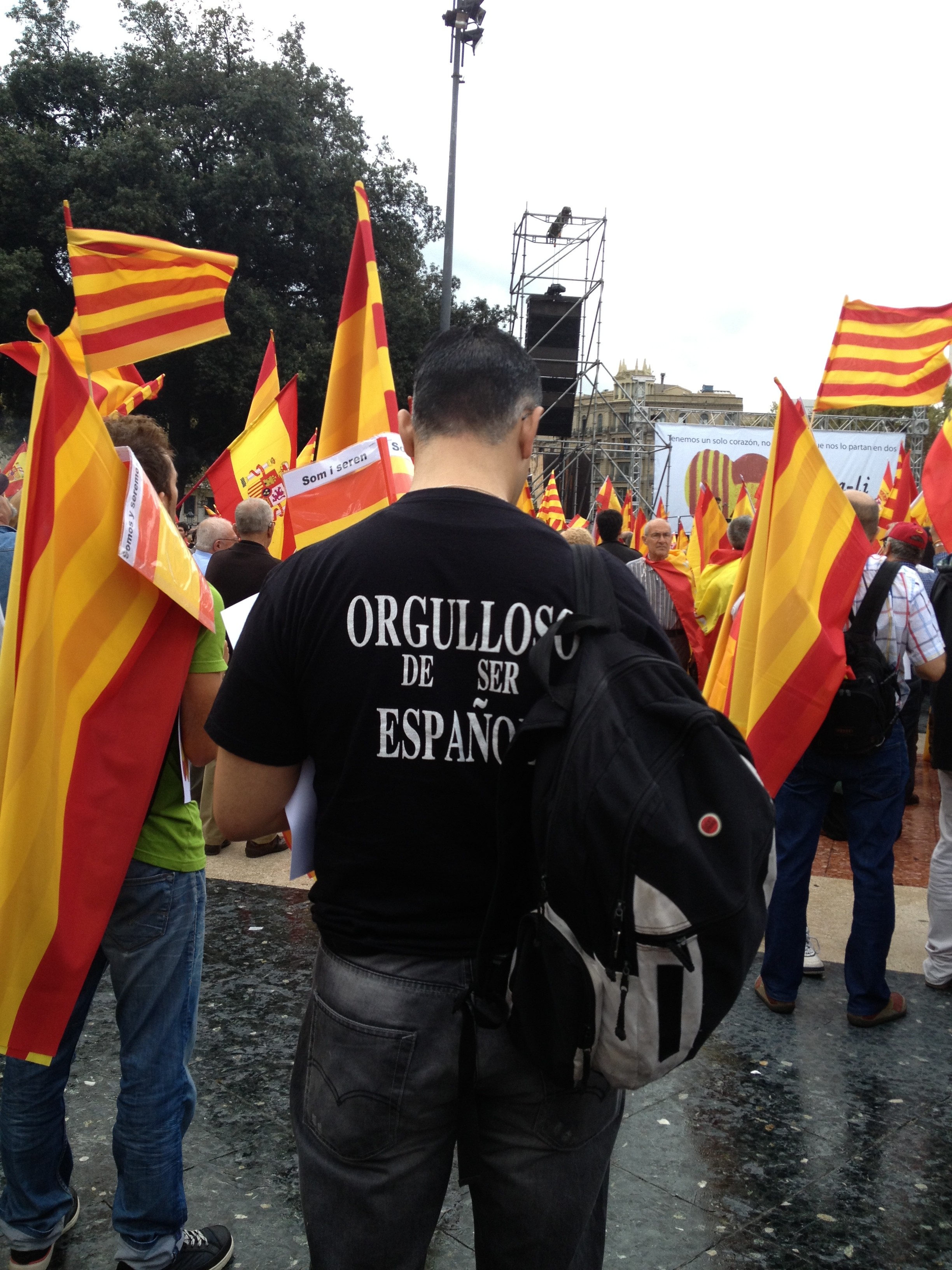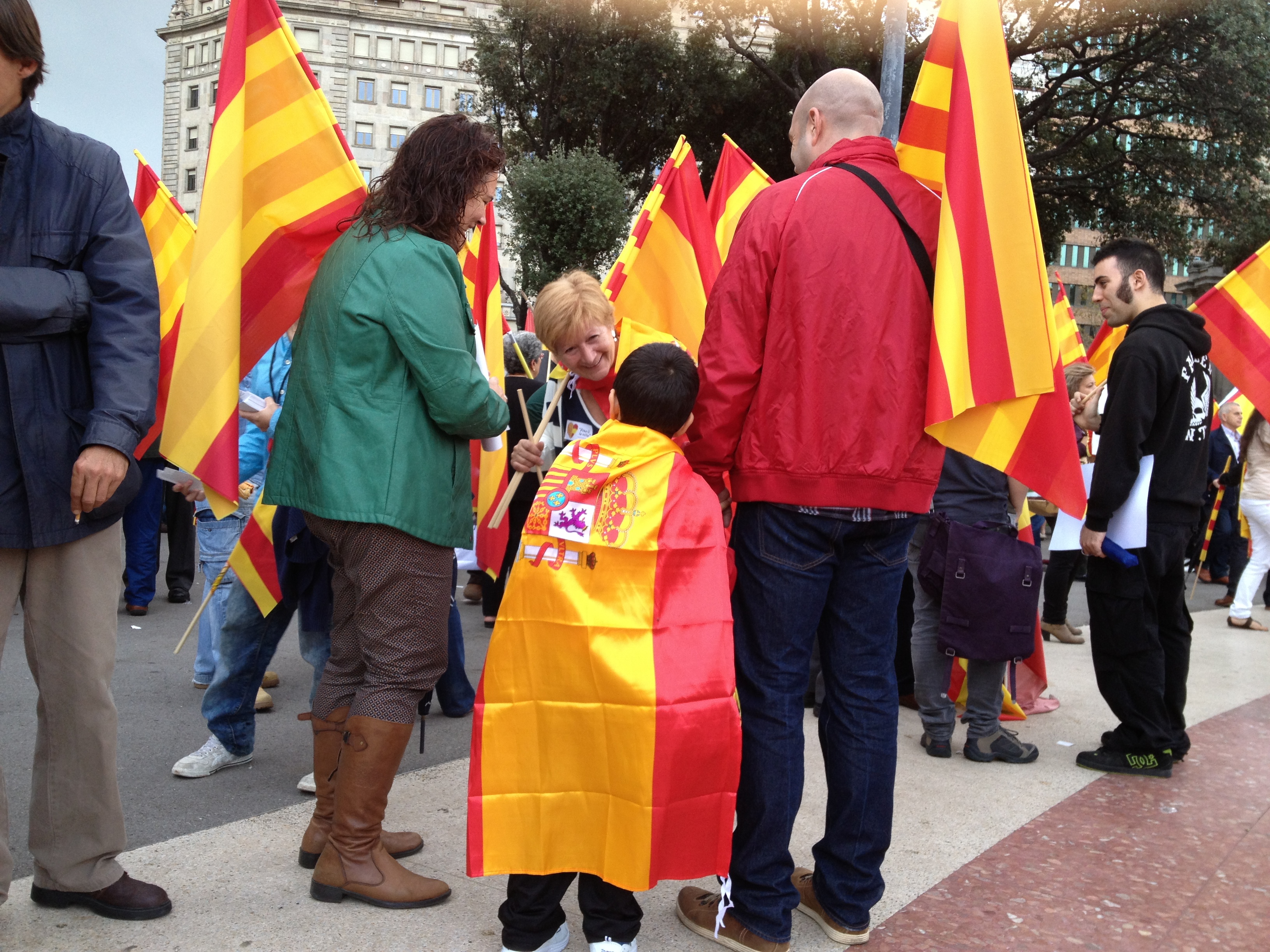 Manifestación en la plaza de Cataluña, convocada por varios colectivos cívicos en favor de la unidad de España y contra la secesión de Cataluña. Fotos: María Isabel Guma