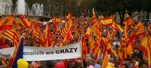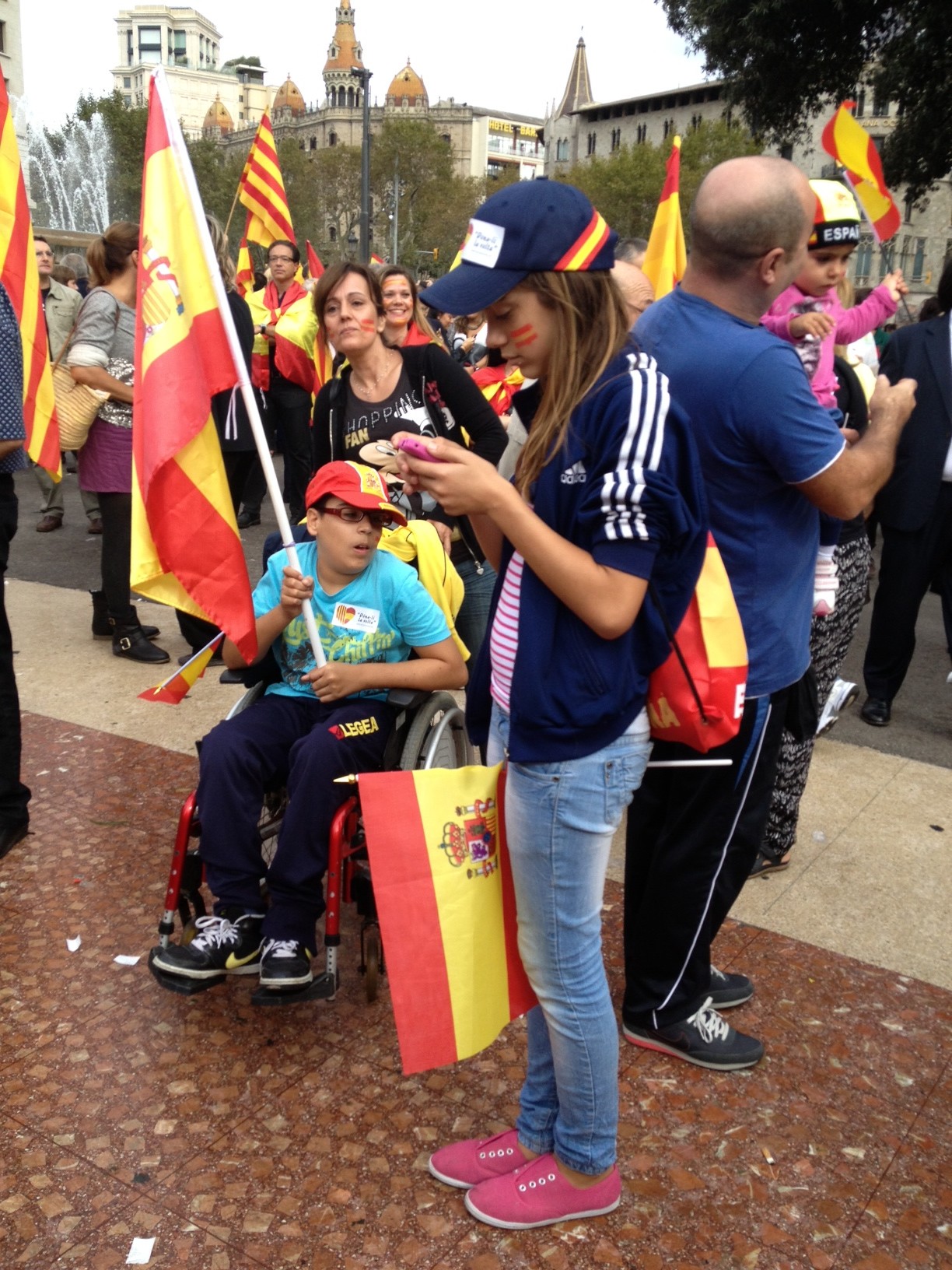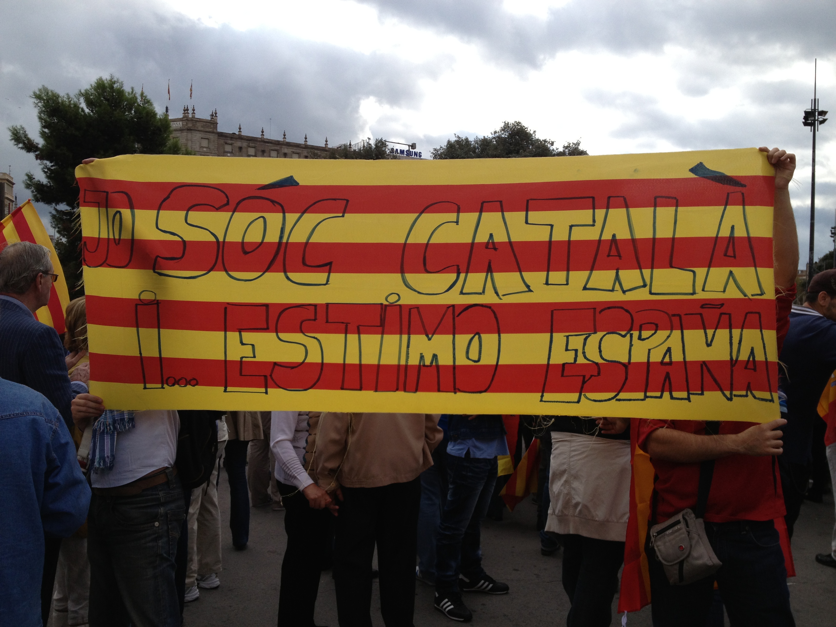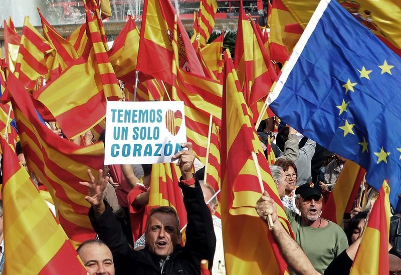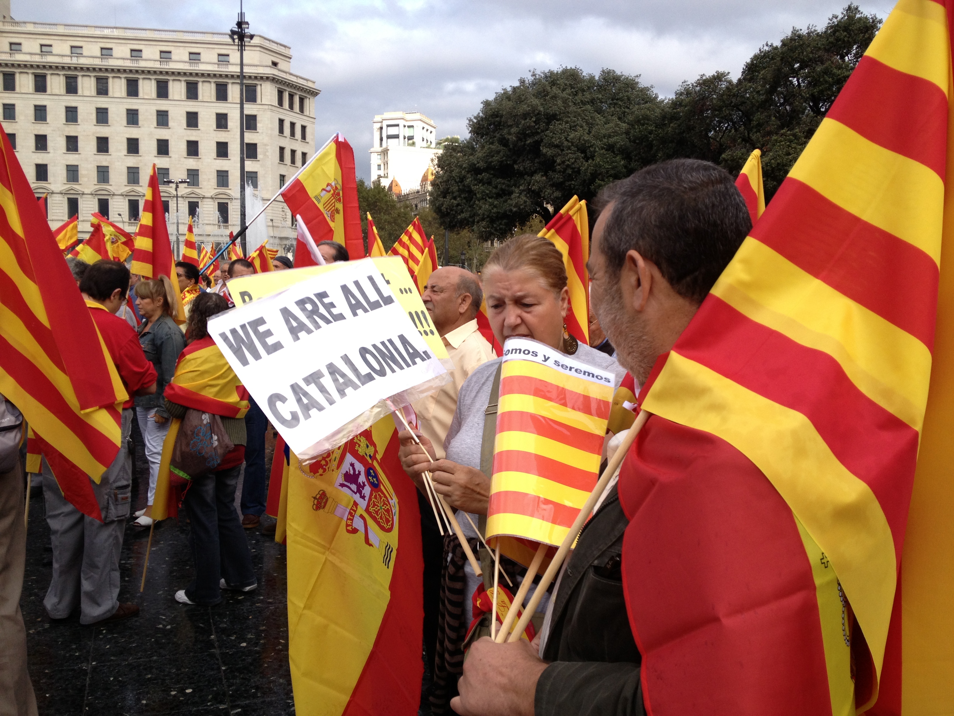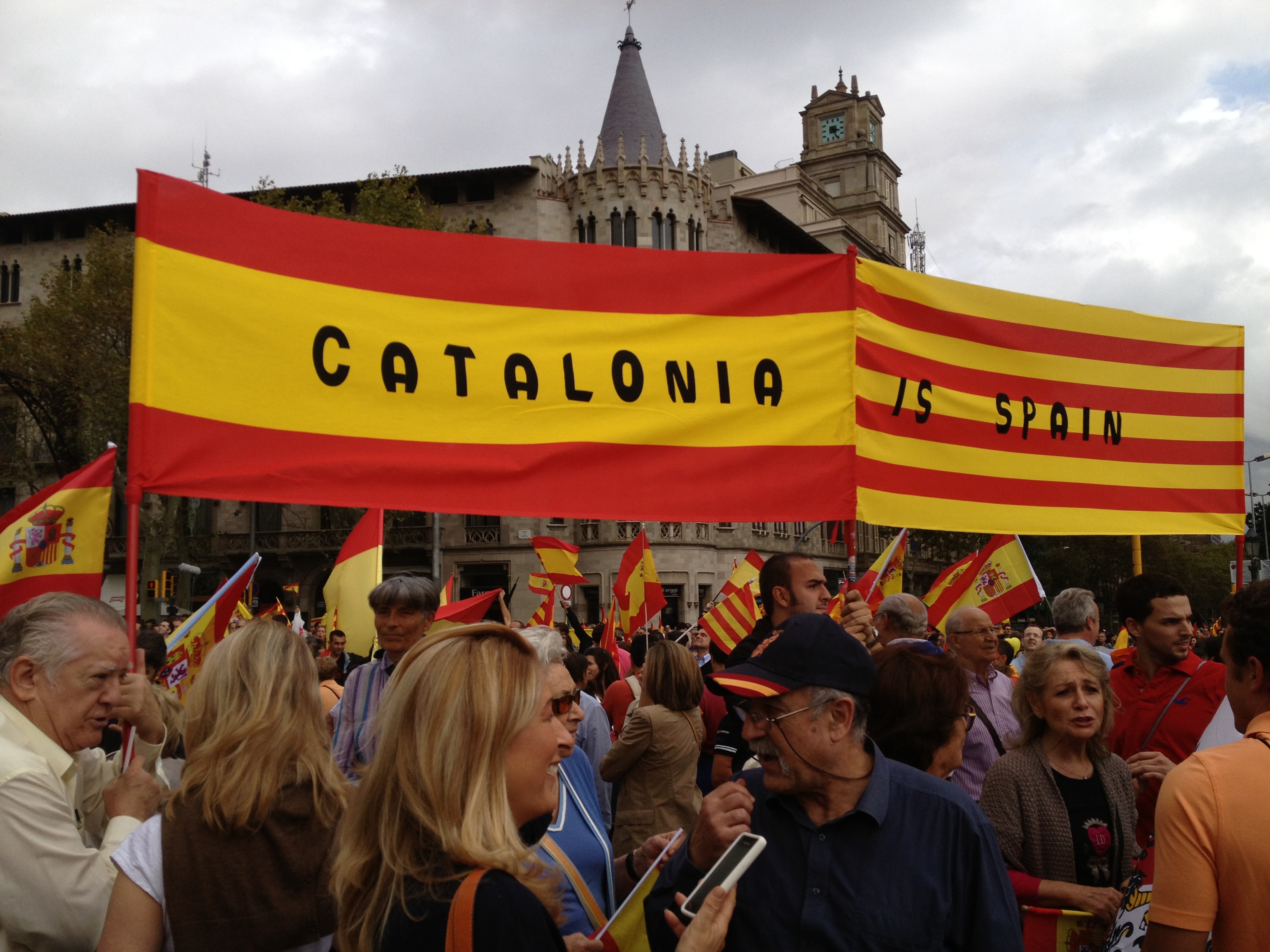 Manifestación en la plaza de Cataluña, convocada por varios colectivos cívicos en favor de la unidad de España y contra la secesión de Cataluña. Fotos: María Isabel Guma