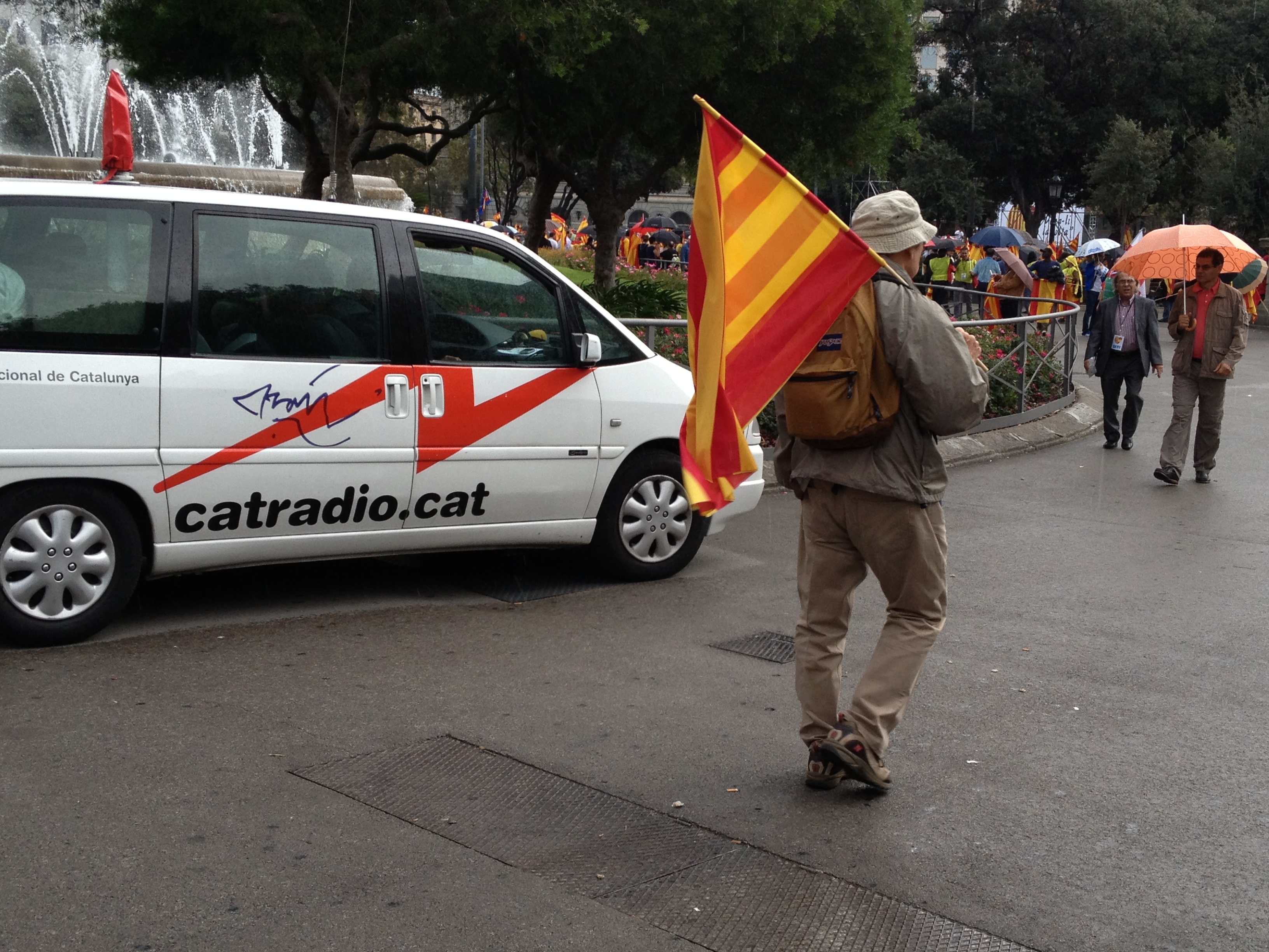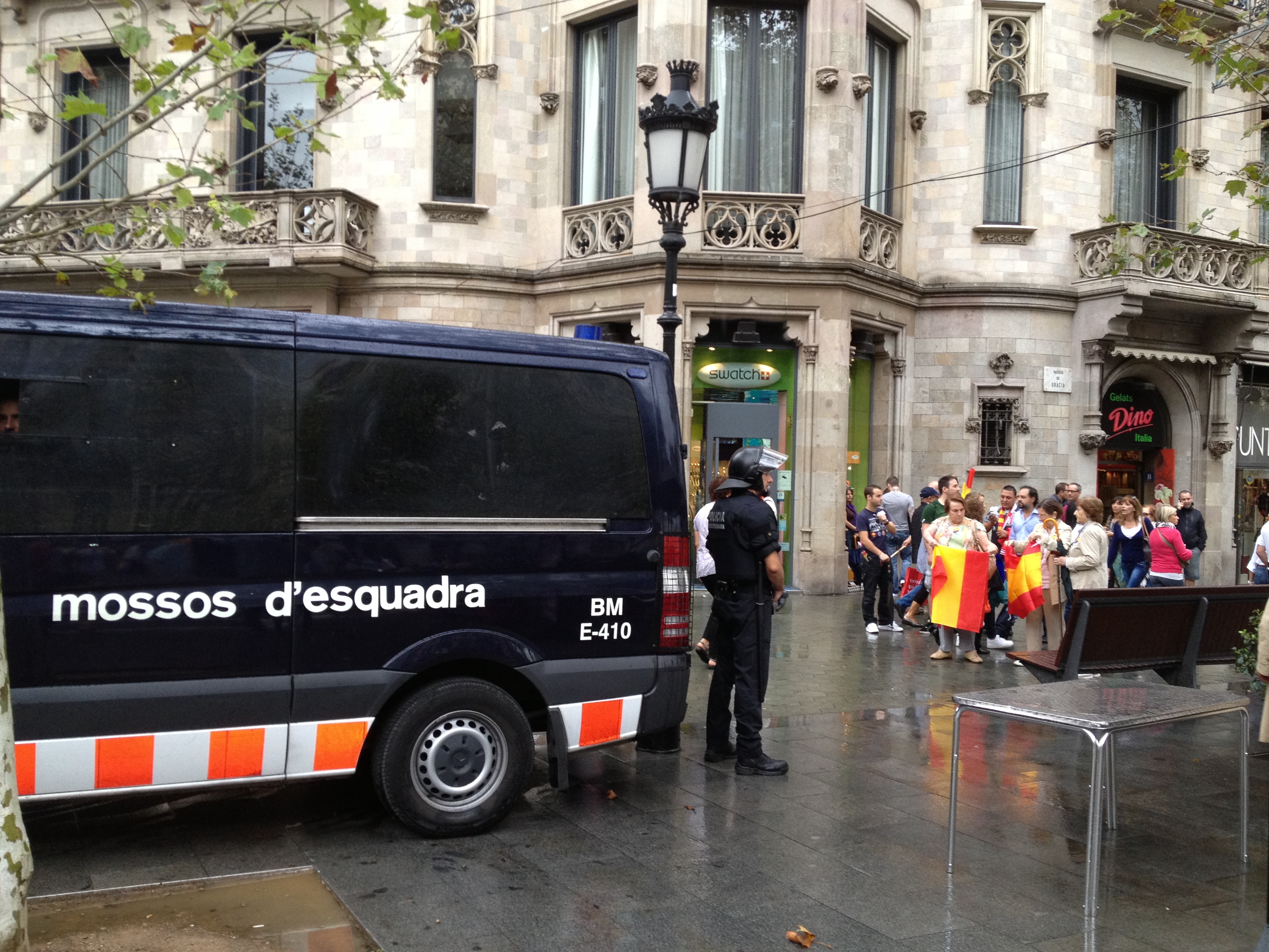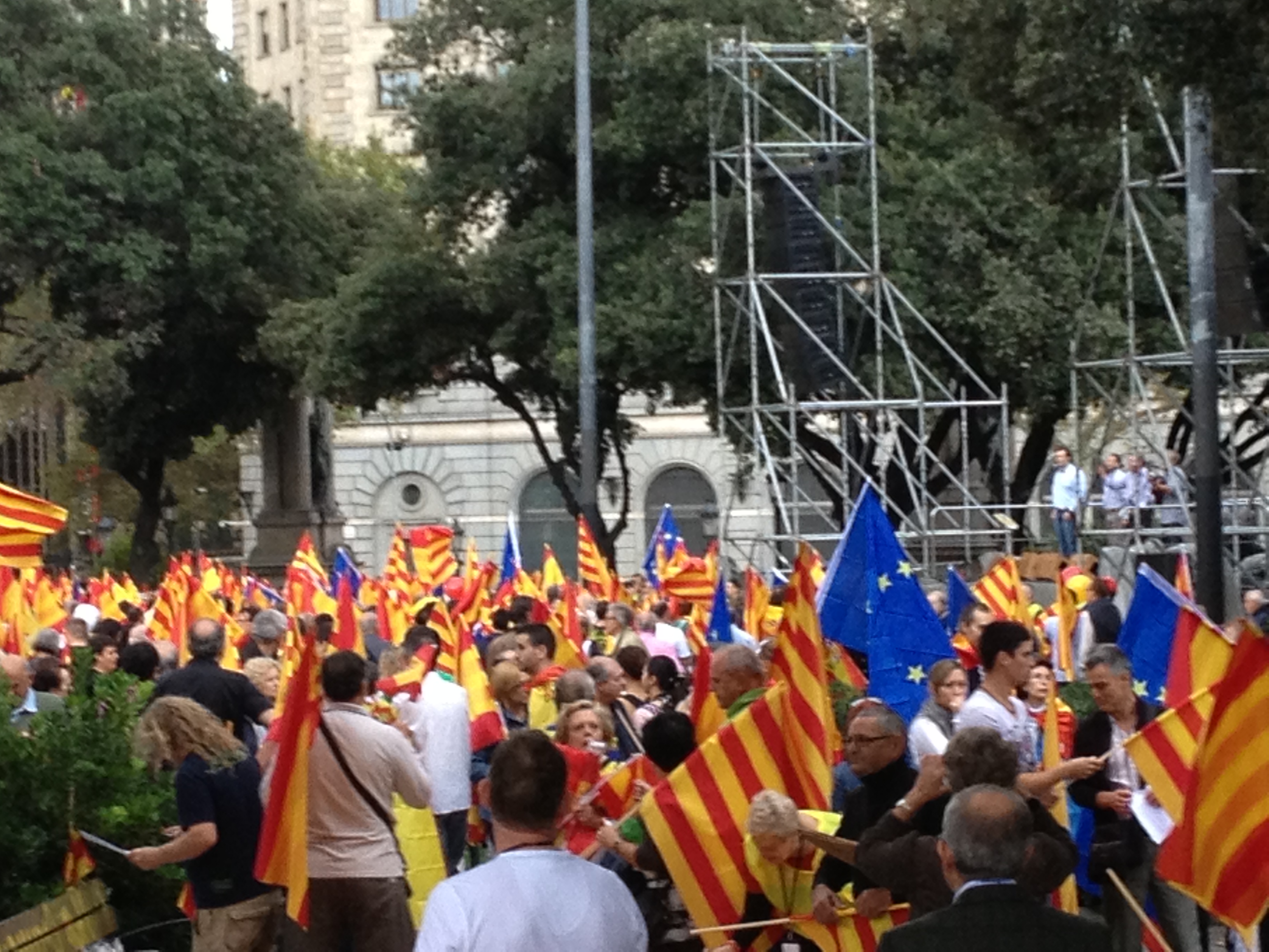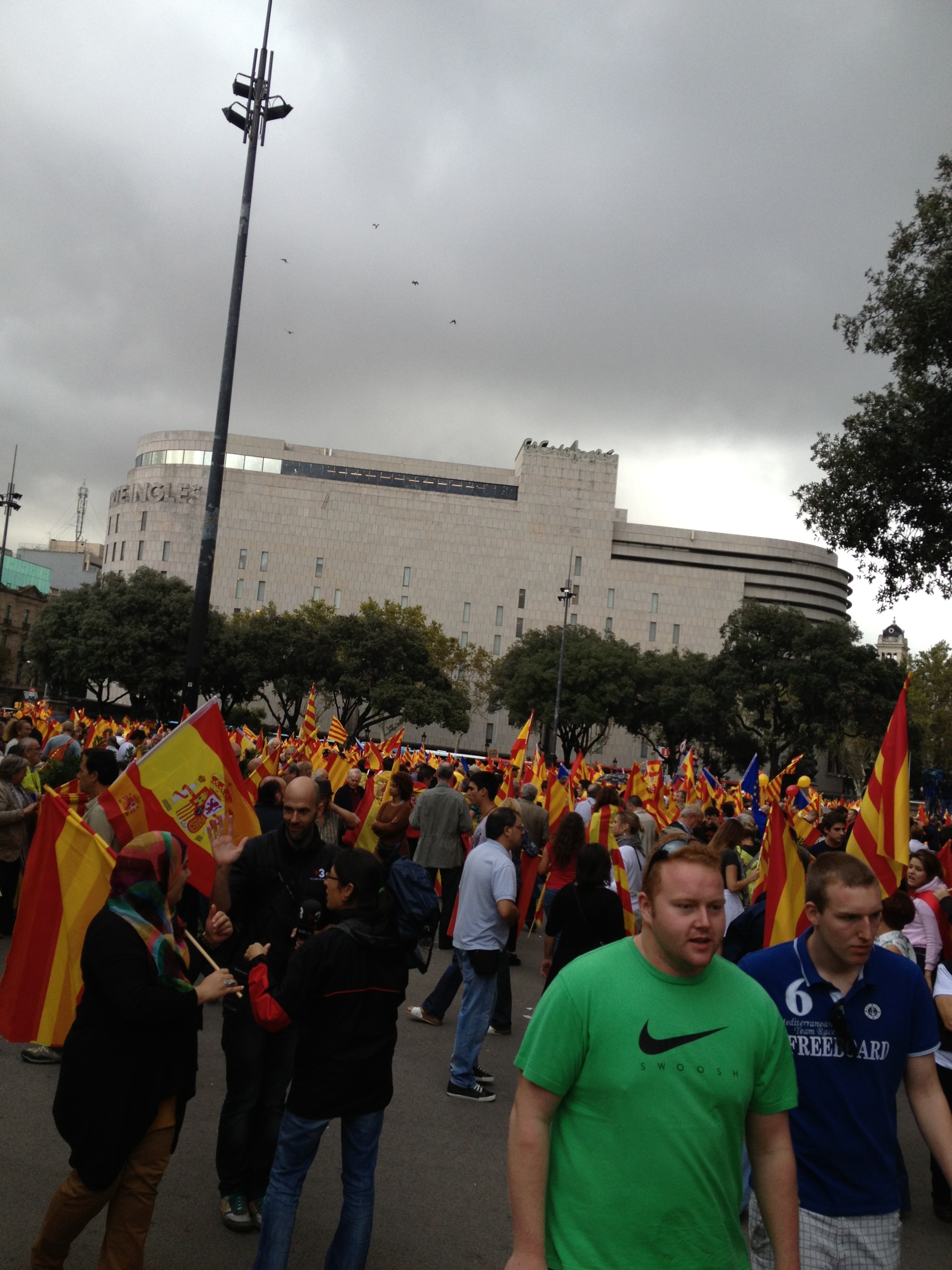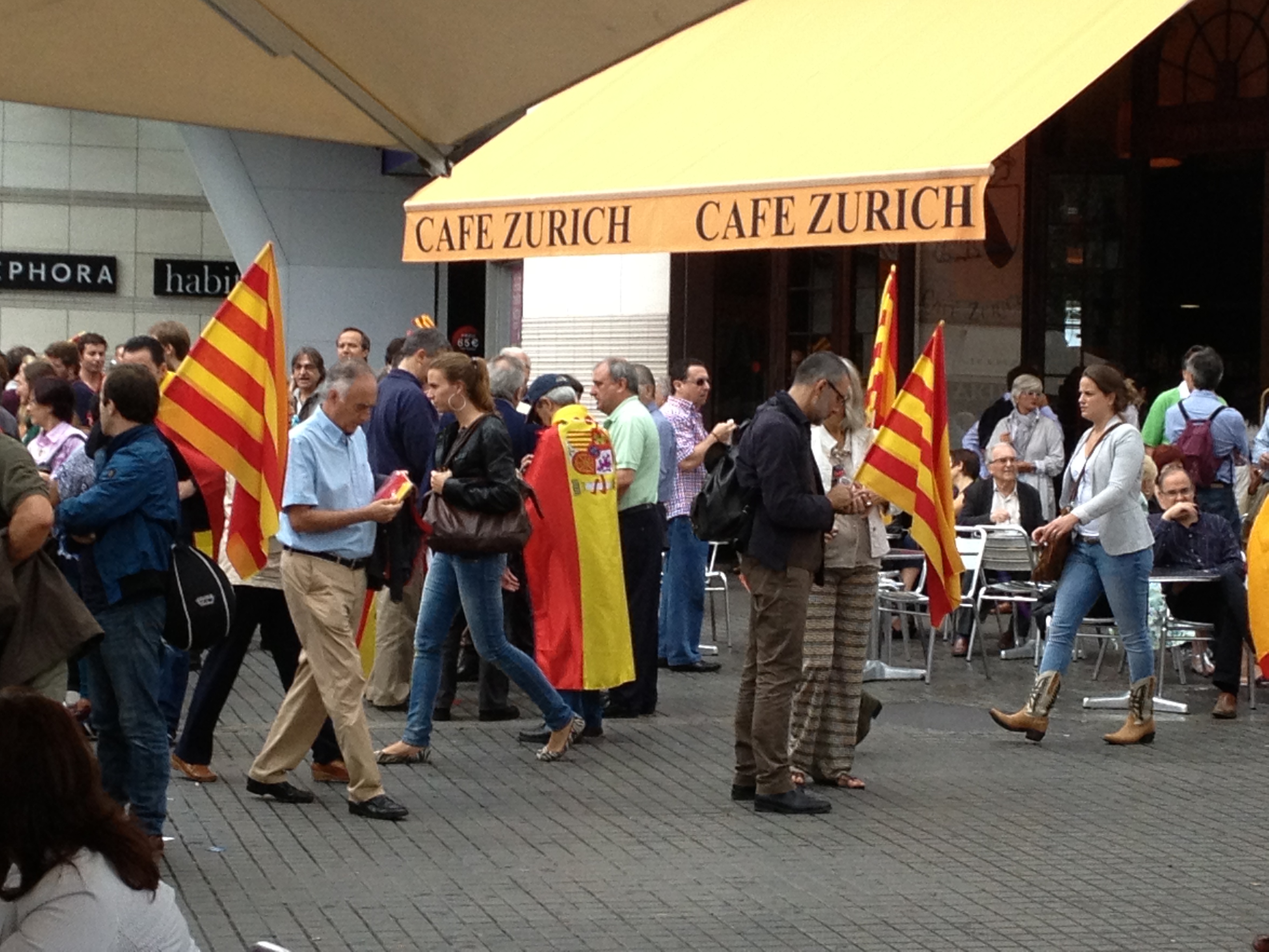 Manifestación en la plaza de Cataluña, convocada por varios colectivos cívicos en favor de la unidad de España y contra la secesión de Cataluña. Fotos: María Isabel Guma
