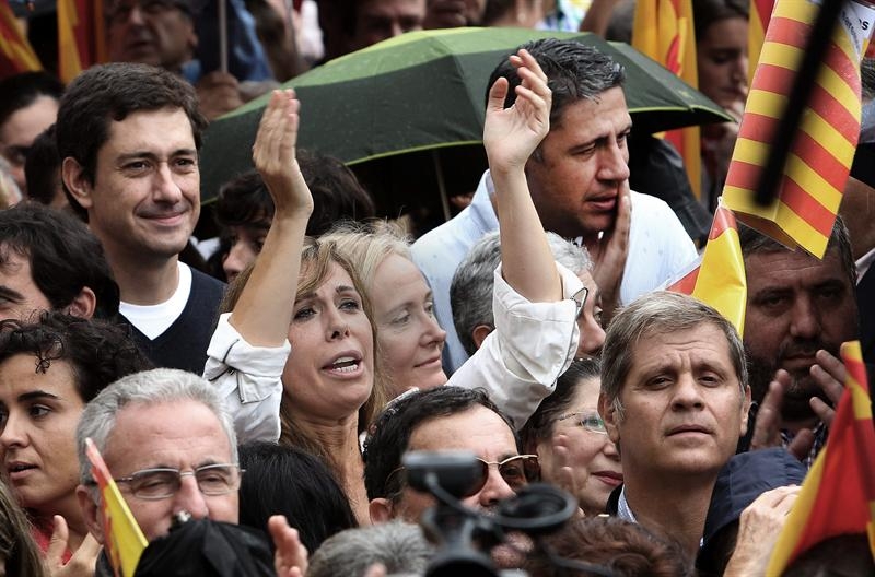 La presidenta del PP catalán Alicia Sánchez Camacho junto a Alberto Fernández Díaz, el alcalde de Badalona, Xavier García Albiol y otros cargos del PP catalán.