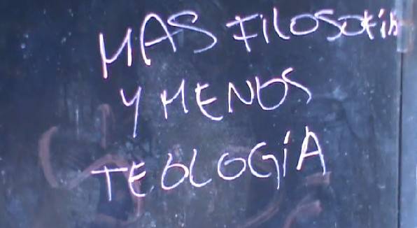 Luego se han encaminado por los pasillos y han subido hasta las aulas de 3º de la ESO, al grito de "dónde están los curas, que los vamos a quemar" o "más educación pública y menos crucifijos".