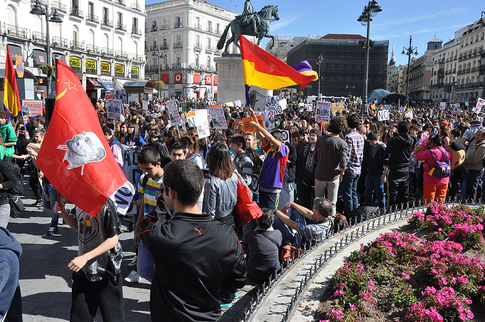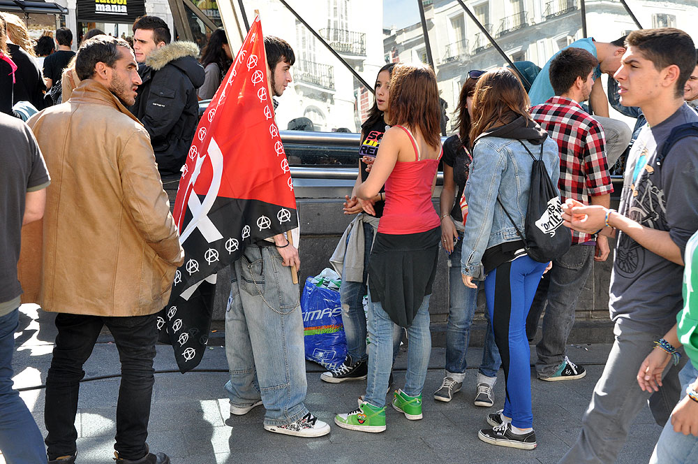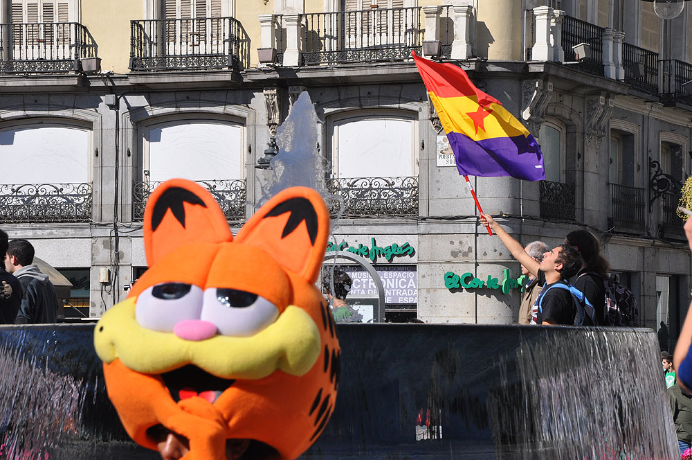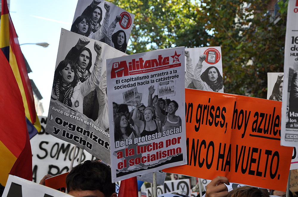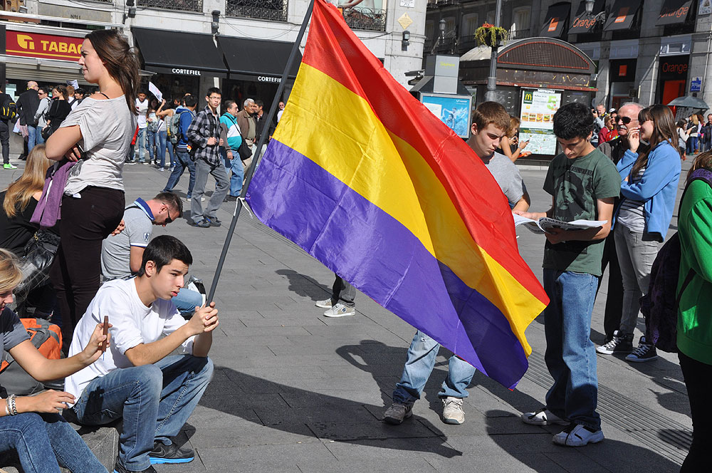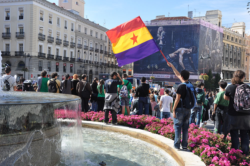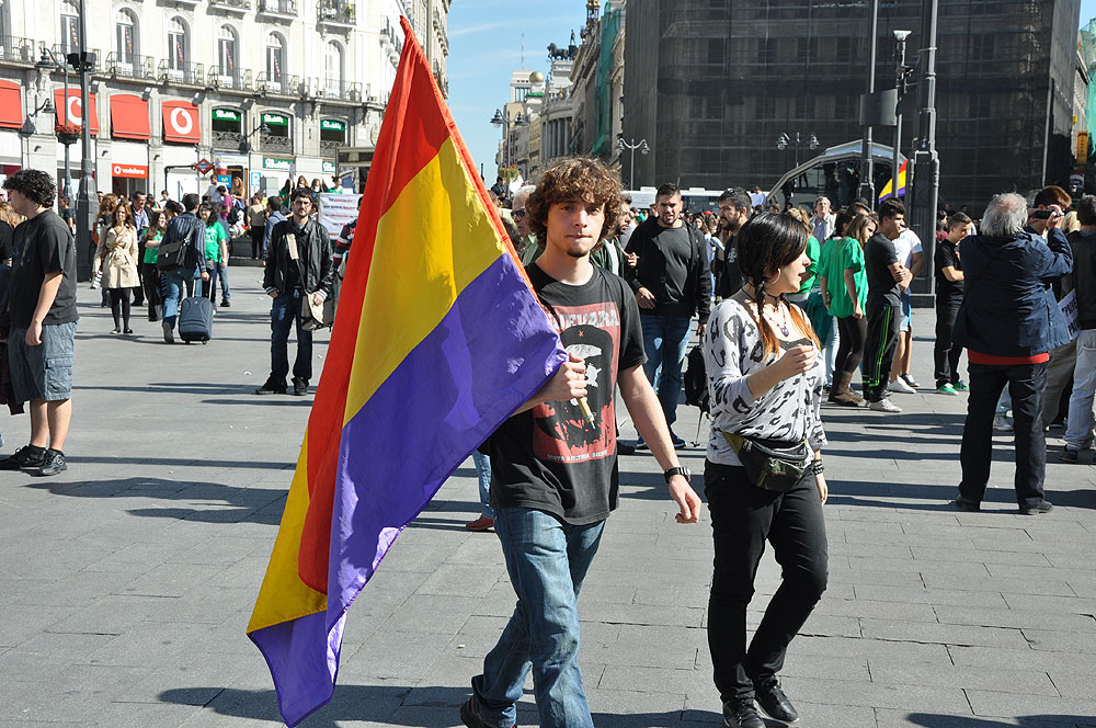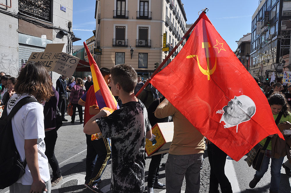 Las que nunca faltan en este tipo de manifestaciones: banderas republicanas y comunistas.